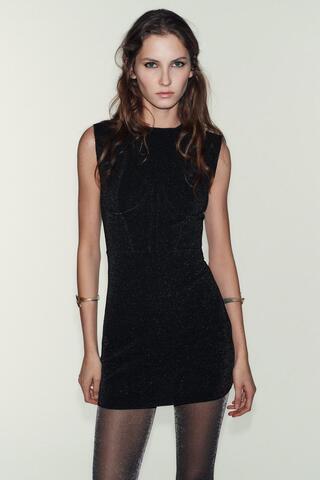 ZARA КОРОТКОЕ ЭЛАСТИЧНОЕ ПЛАТЬЕ С БЛЁСТКАМИ, ЧЕРНЫЙ