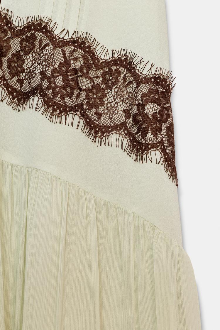 ZARA КОРОТКОЕ КОМБИНИРОВАННОЕ ПЛАТЬЕ С КРУЖЕВОМ, КОРИЧНЕВЫЙ/ЗЕЛЕНЫЙ