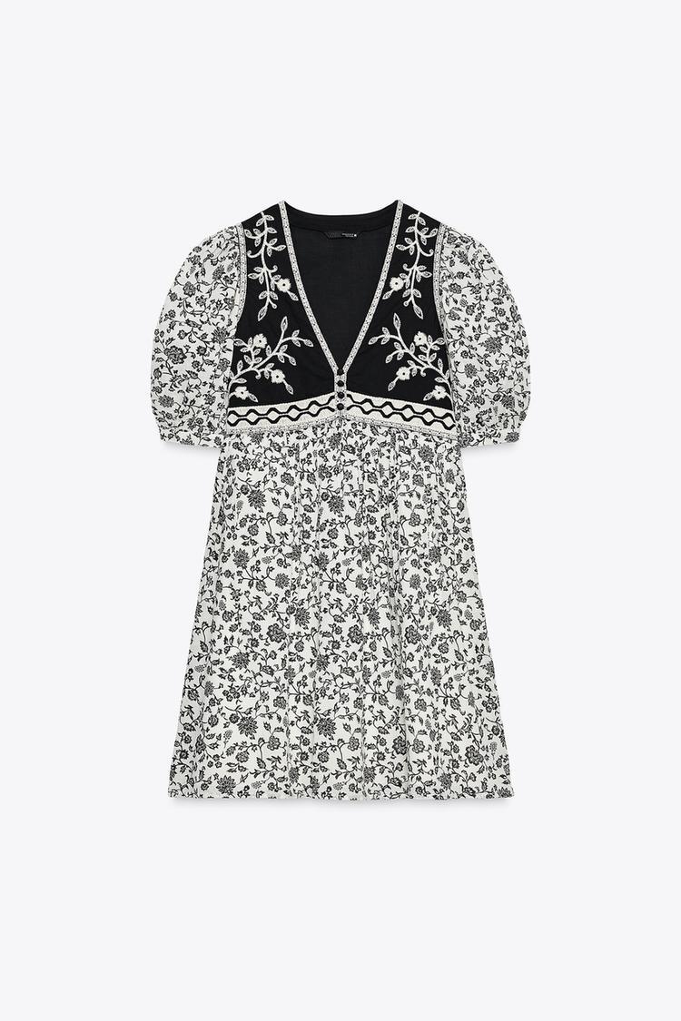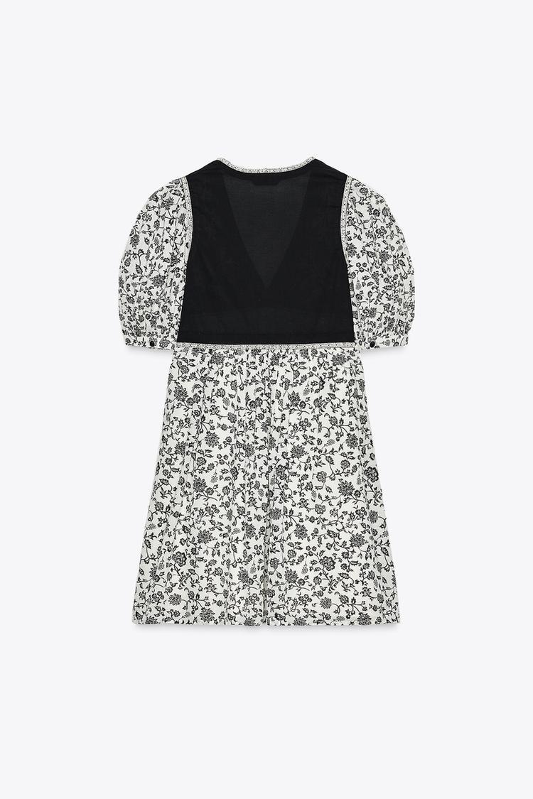 ZARA КОРОТКОЕ КОМБИНИРОВАННОЕ ПЛАТЬЕ С ЦВЕТОЧНЫМ ПРИНТОМ, РАЗНОЦВЕТНЫЙ