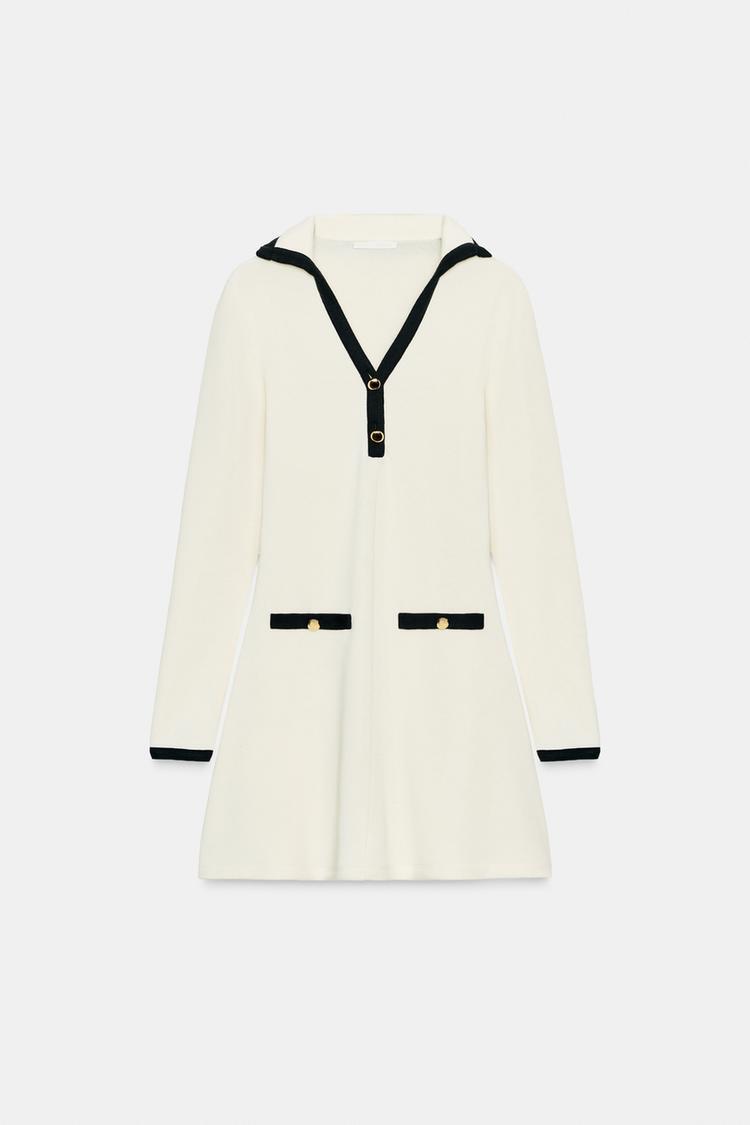 ZARA КОРОТКОЕ МЯГКОЕ ПЛАТЬЕ, ЭКРЮ/ЧЕРНЫЙ