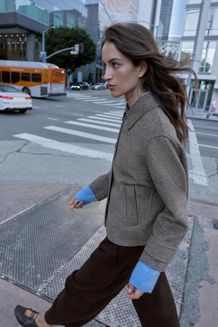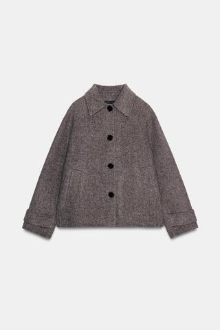 ZARA КОРОТКОЕ ПАЛЬТО ИЗ ШЕРСТИ, РЫЖЕВАТО-КОРИЧНЕВЫЙ