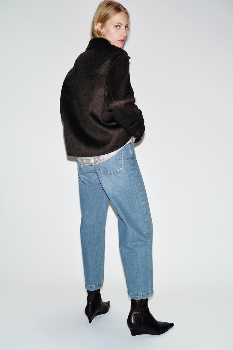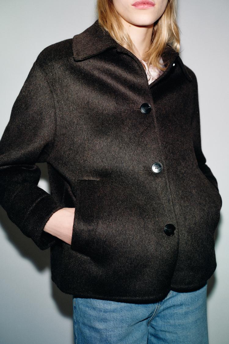 ZARA КОРОТКОЕ ПАЛЬТО ИЗ ШЕРСТИ, ТЕМНО-КОРИЧНЕВЫЙ