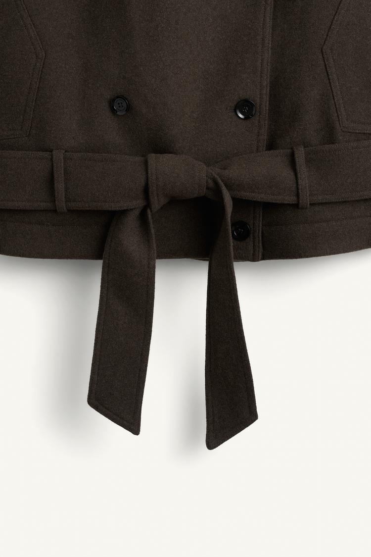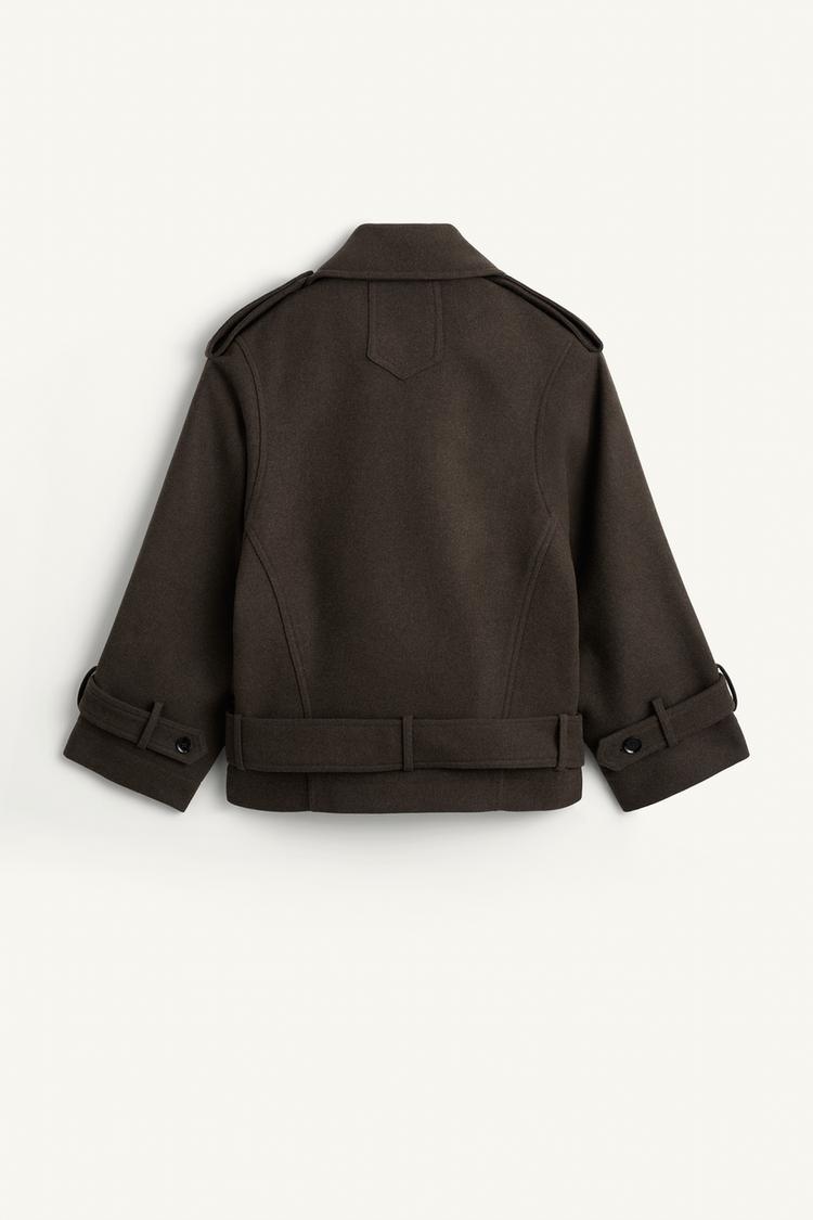 ZARA КОРОТКОЕ ПАЛЬТО ИЗ СМЕСОВОЙ ШЕРСТИ, ХАКИ