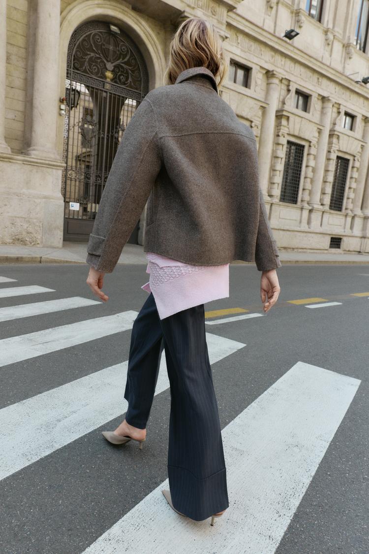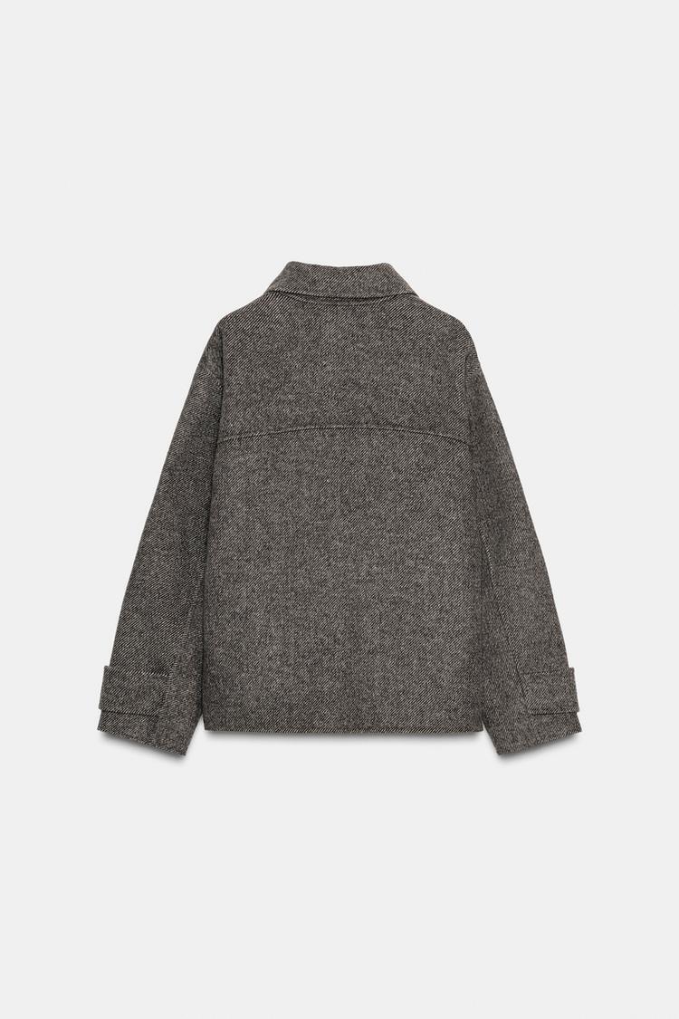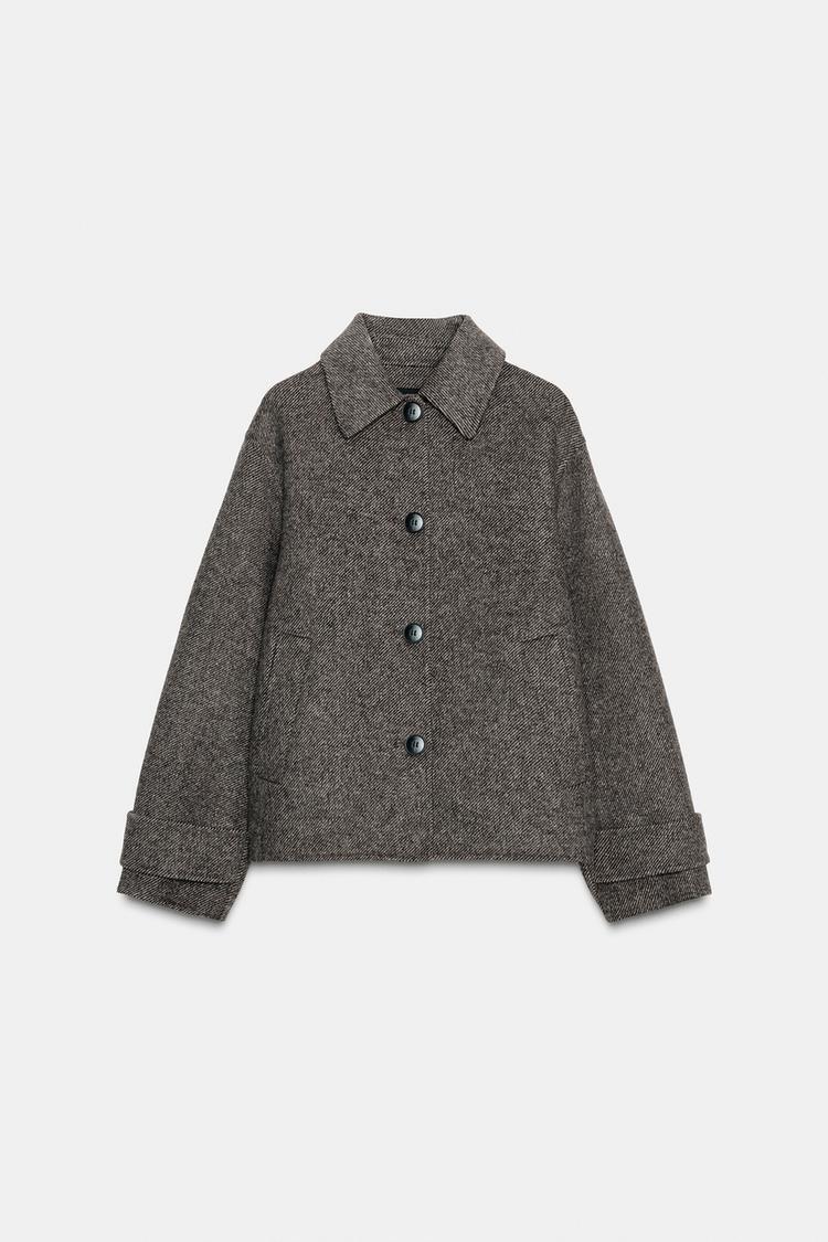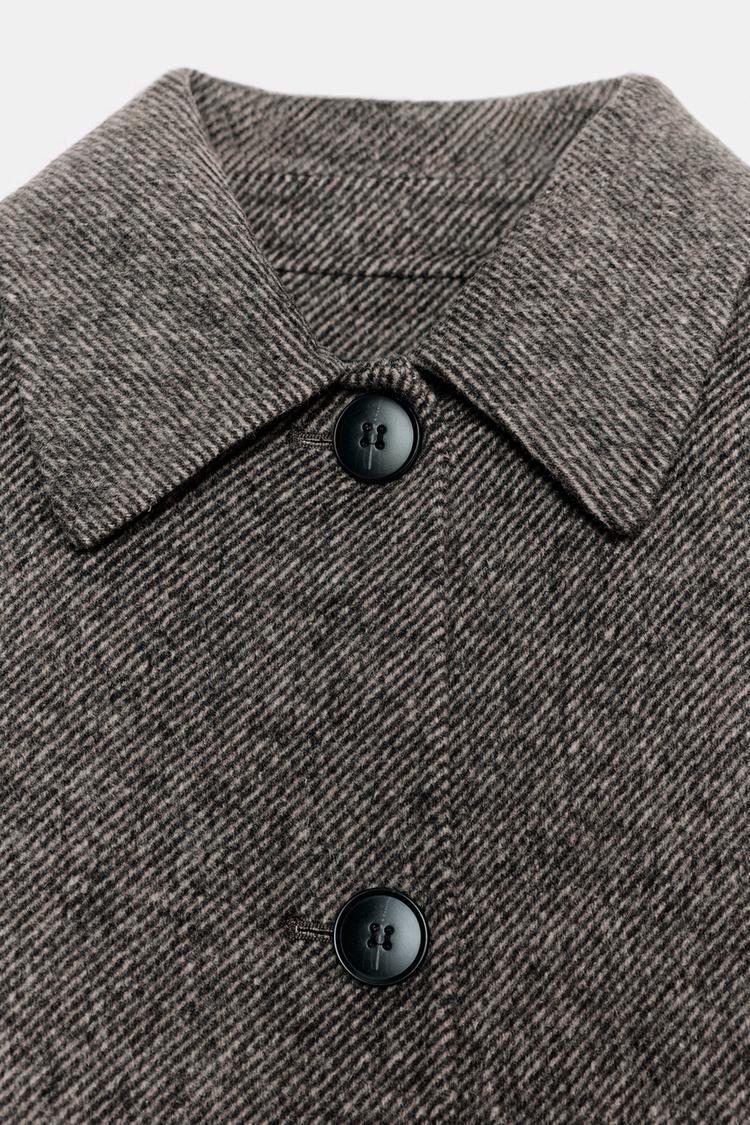 ZARA КОРОТКОЕ ПАЛЬТО В ЕЛОЧКУ, РЫЖЕВАТО-КОРИЧНЕВЫЙ