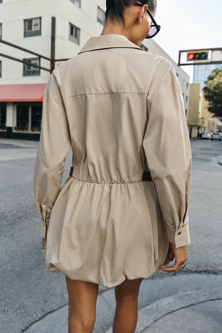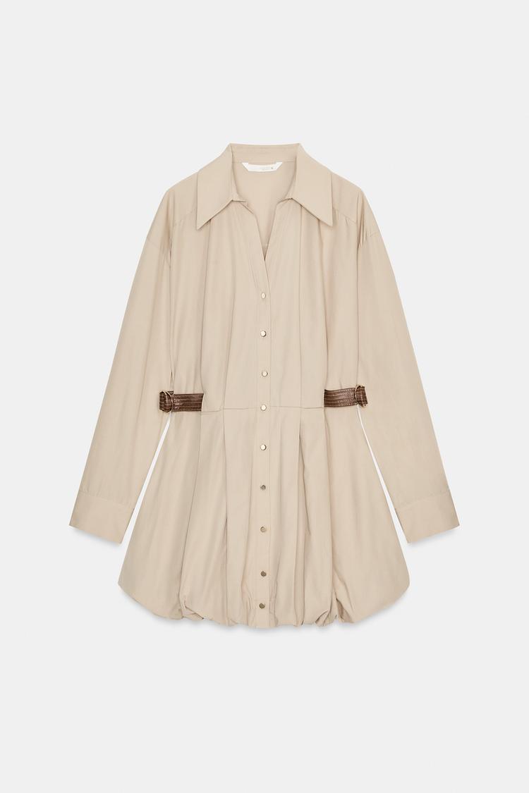 ZARA КОРОТКОЕ ПЛАТЬЕ-БАЛЛОН, БЕЖЕВЫЙ