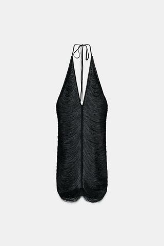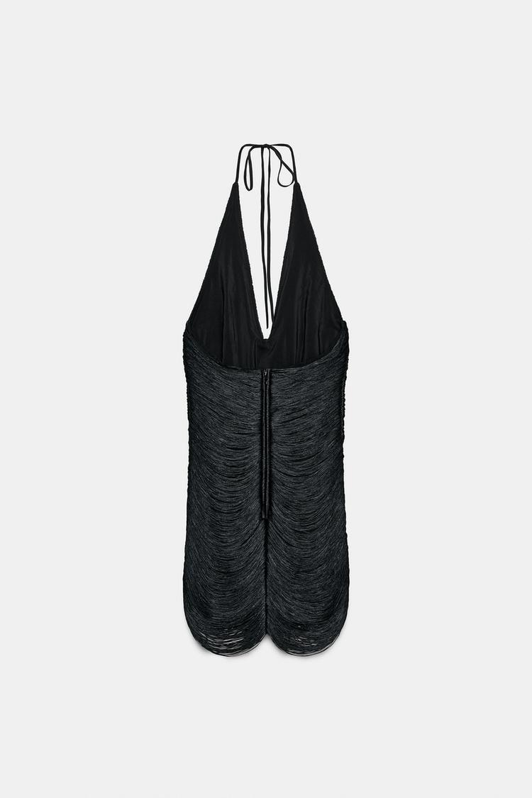 ZARA КОРОТКОЕ ПЛАТЬЕ ХАЛТЕР С БАХРОМОЙ, ЧЕРНЫЙ