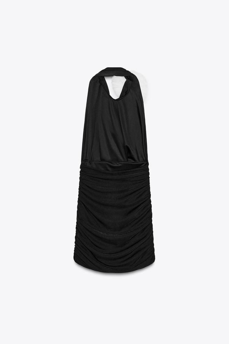 ZARA КОРОТКОЕ ПЛАТЬЕ ХАЛТЕР С ЦВЕТОЧНОЙ ОТДЕЛКОЙ, ЧЕРНЫЙ