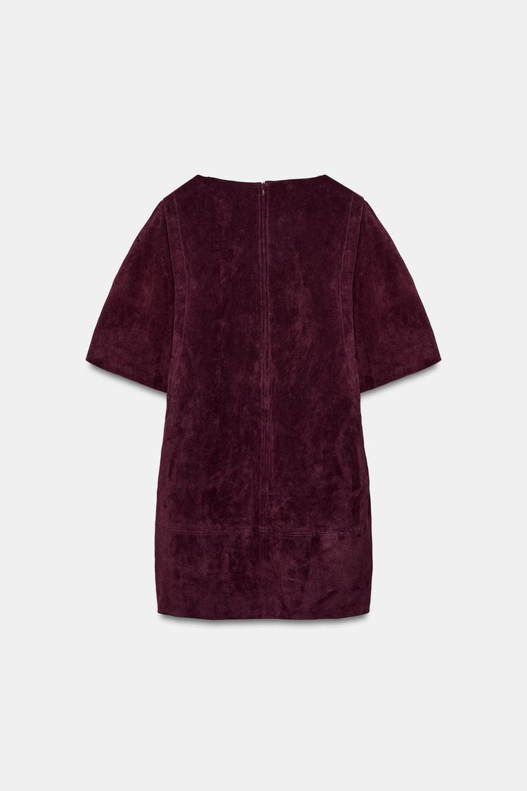 ZARA КОРОТКОЕ ПЛАТЬЕ ИЗ 100% ЗАМШЕВОЙ КОЖИ, БУРГУНДИ