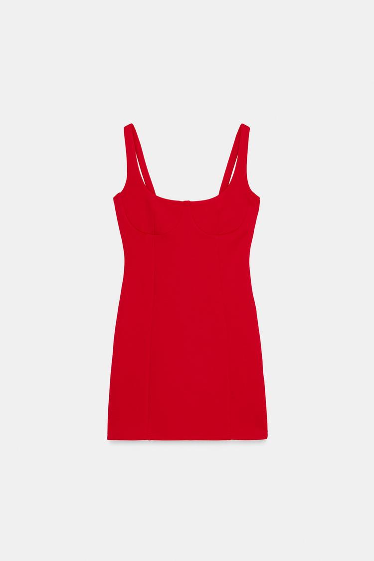 ZARA КОРОТКОЕ ПЛАТЬЕ ИЗ ИНТЕРЛОКА, КРАСНЫЙ