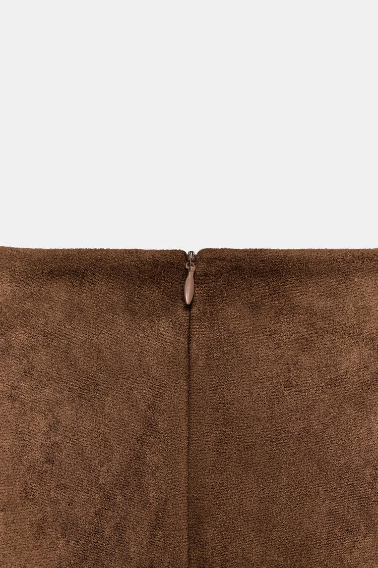 ZARA КОРОТКОЕ ПЛАТЬЕ ИЗ ИСКУССТВЕННОЙ ЗАМШИ, КАРАМЕЛЬНЫЙ
