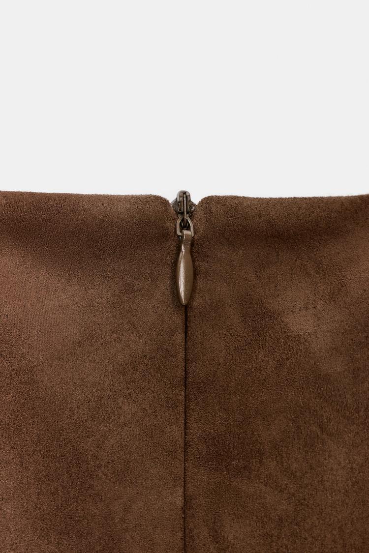 ZARA КОРОТКОЕ ПЛАТЬЕ ИЗ ИСКУССТВЕННОЙ ЗАМШИ С ВОЛАНАМИ, ТЕМНО-КОРИЧНЕВЫЙ