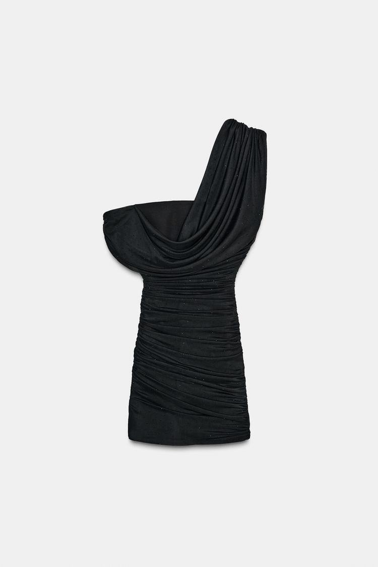 ZARA КОРОТКОЕ ПЛАТЬЕ ИЗ СЕТЧАТОЙ ТКАНИ СО СТРАЗАМИ, ЧЕРНЫЙ