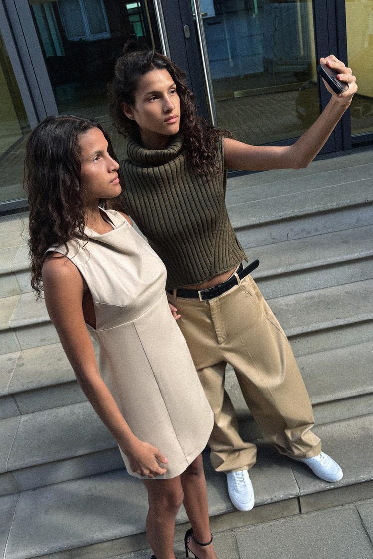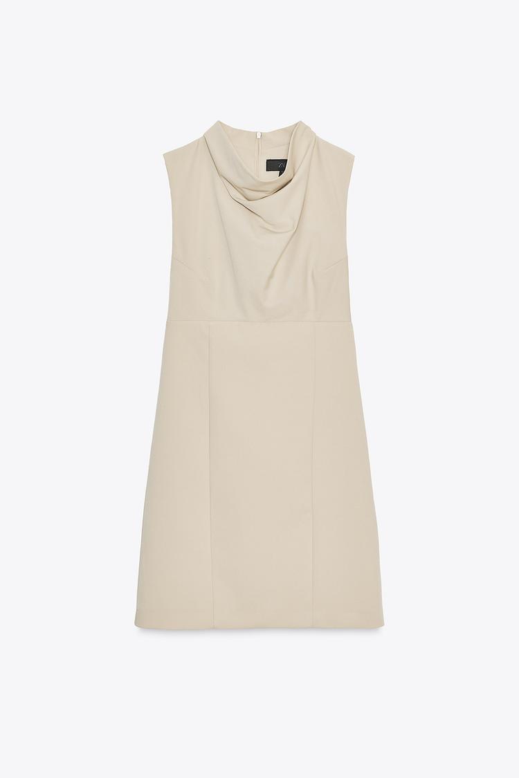 ZARA КОРОТКОЕ ПЛАТЬЕ С ДРАПИРОВАННЫМ ВЫРЕЗОМ, БЕЖЕВЫЙ