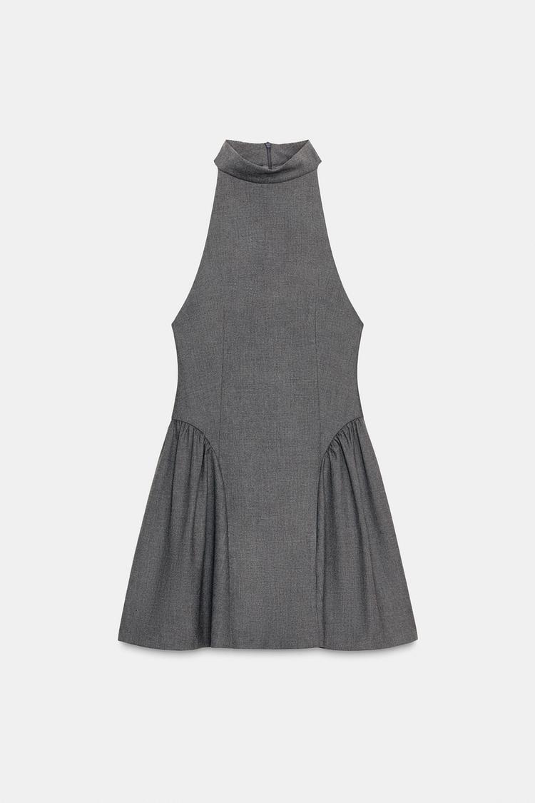 ZARA КОРОТКОЕ ПЛАТЬЕ С ГОРЛОВИНОЙ ХАЛТЕР, УГОЛЬНЫЙ