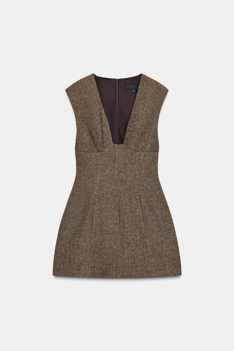 ZARA КОРОТКОЕ ПЛАТЬЕ С ШЕРСТЬЮ, КОРИЧНЕВЫЙ МЕЛАНЖ