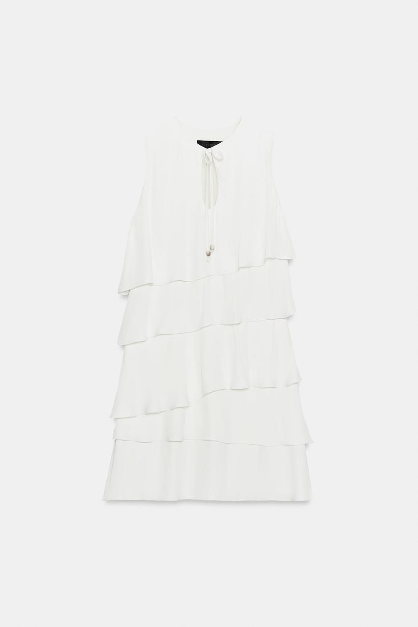 ZARA КОРОТКОЕ ПЛАТЬЕ С ВОЛАНАМИ, ЭКРЮ