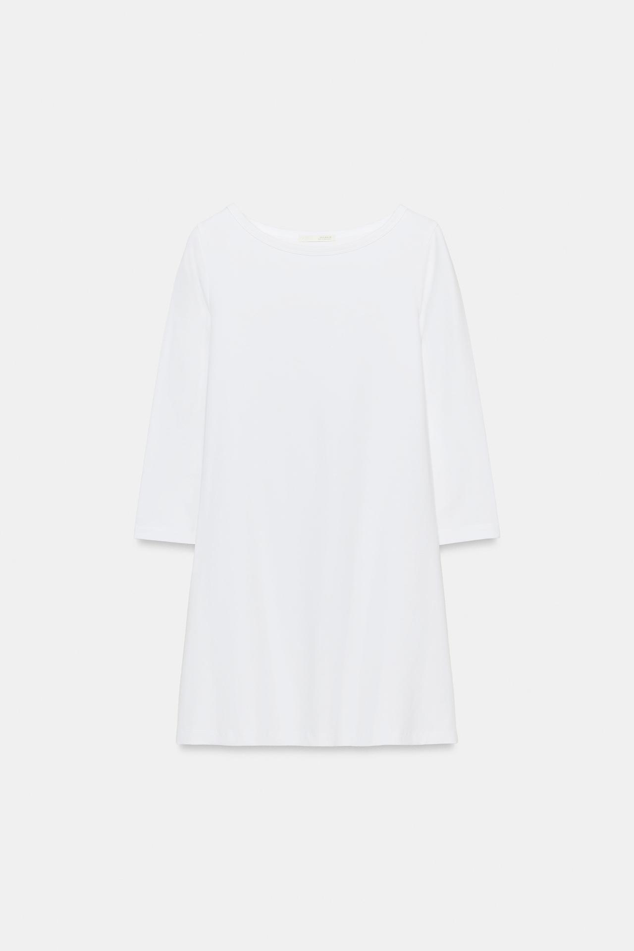 ZARA КОРОТКОЕ ПЛАТЬЕ С ВЫРЕЗОМ «ЛОДОЧКА», БЕЛЫЙ