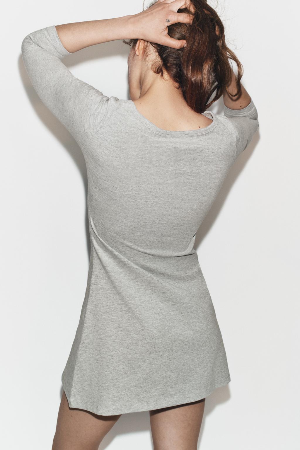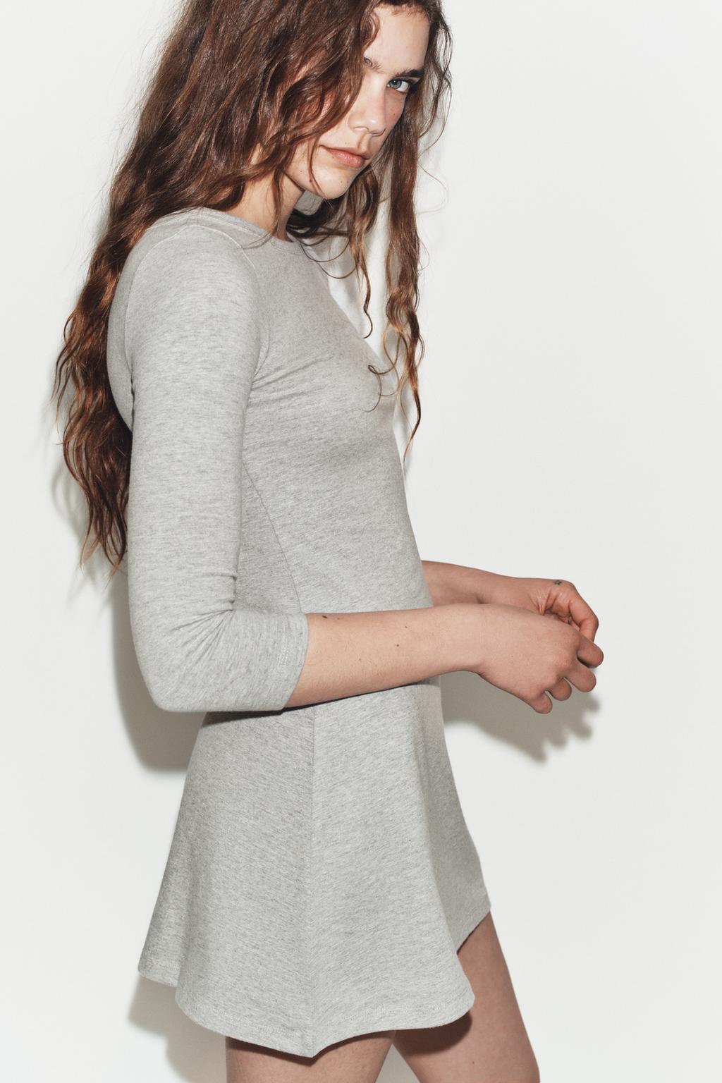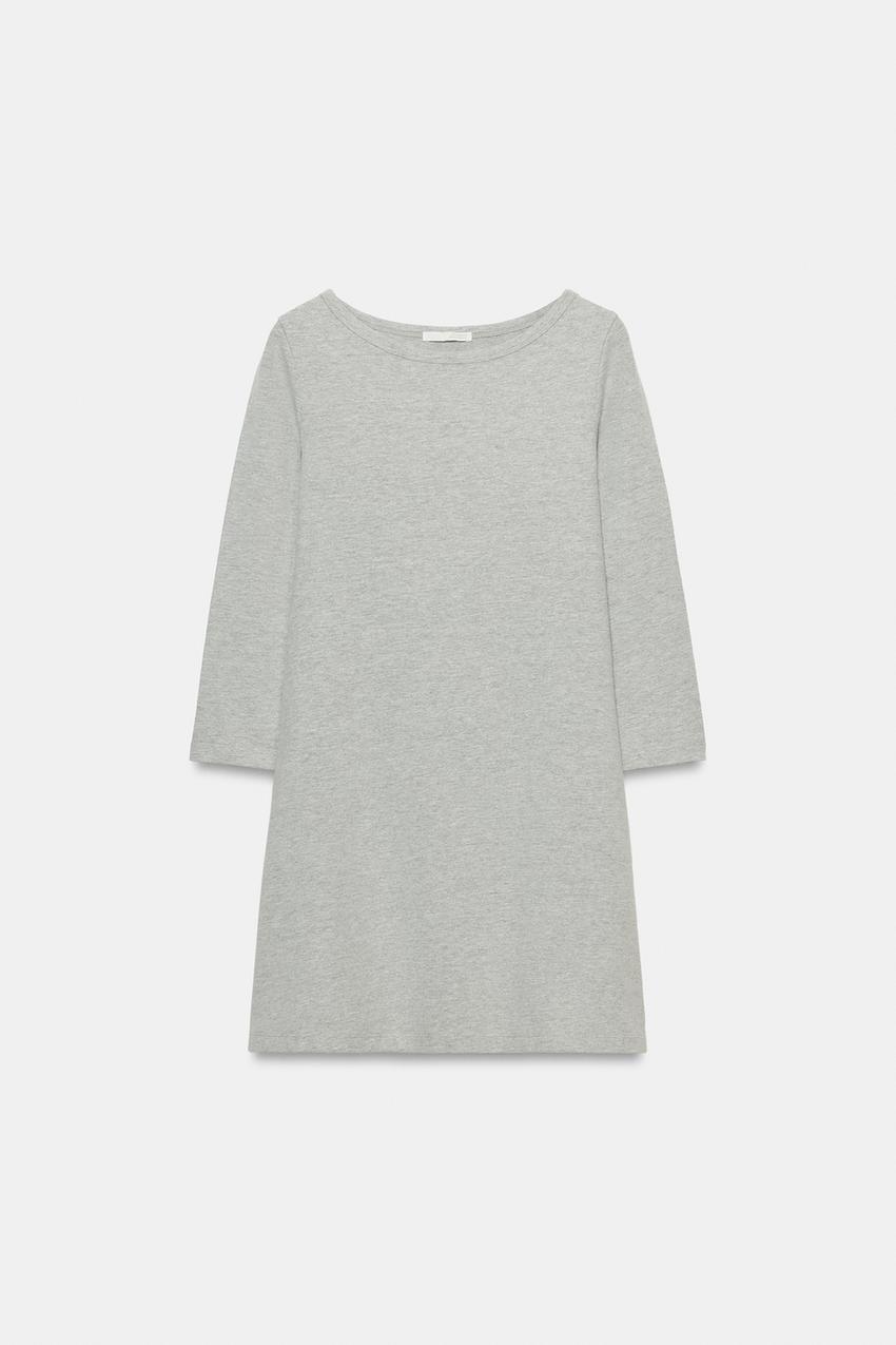 ZARA КОРОТКОЕ ПЛАТЬЕ С ВЫРЕЗОМ «ЛОДОЧКА», СЕРЫЙ МЕЛАНЖ