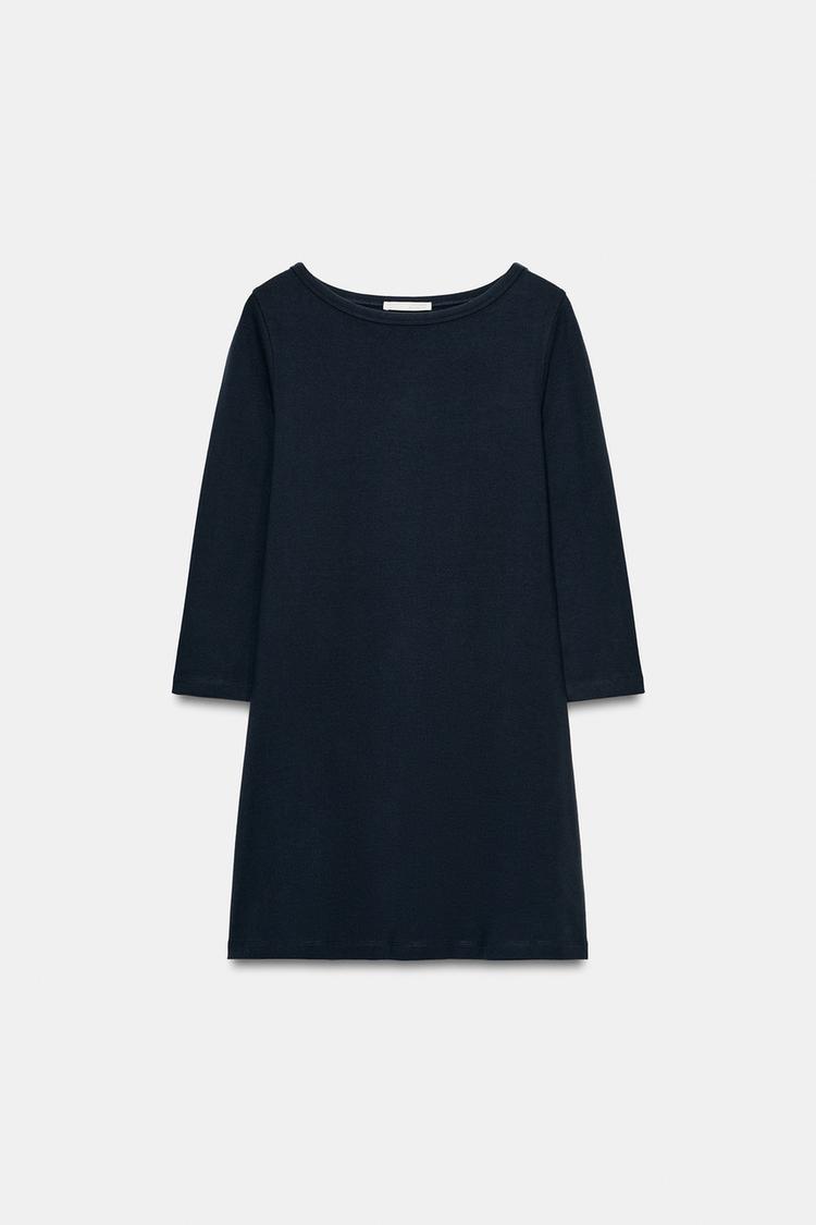 ZARA КОРОТКОЕ ПЛАТЬЕ С ВЫРЕЗОМ «ЛОДОЧКА»,МОРСКОЙ СИНИЙ
