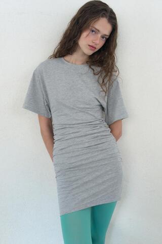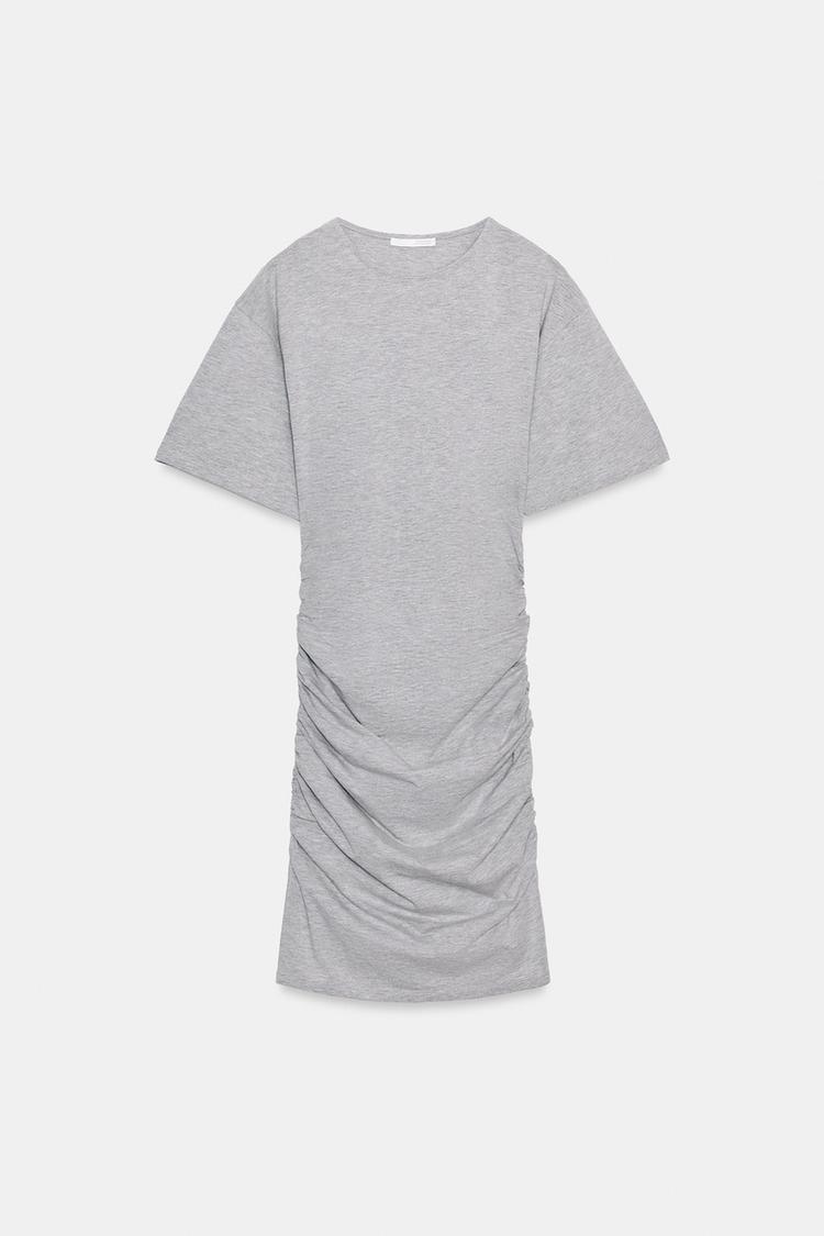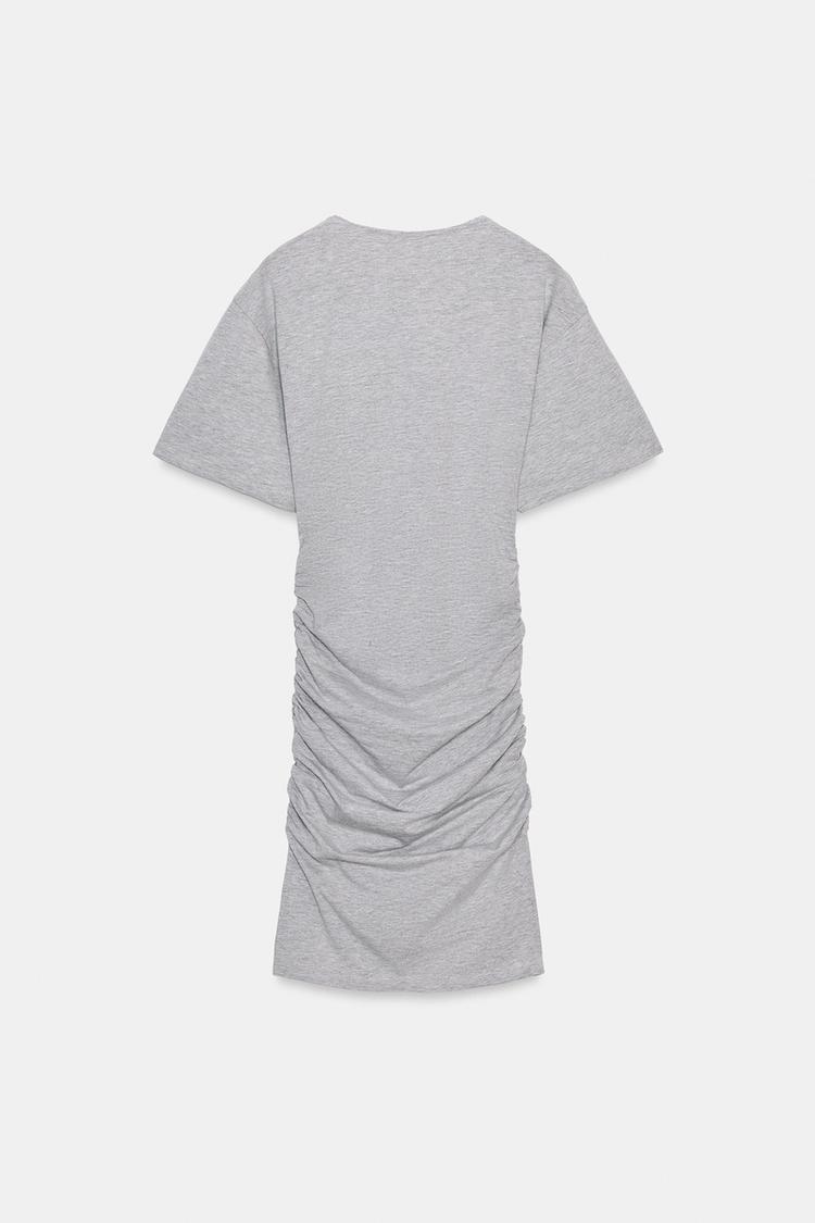 ZARA КОРОТКОЕ ПЛАТЬЕ СО СБОРКАМИ, СЕРЫЙ МЕЛАНЖ