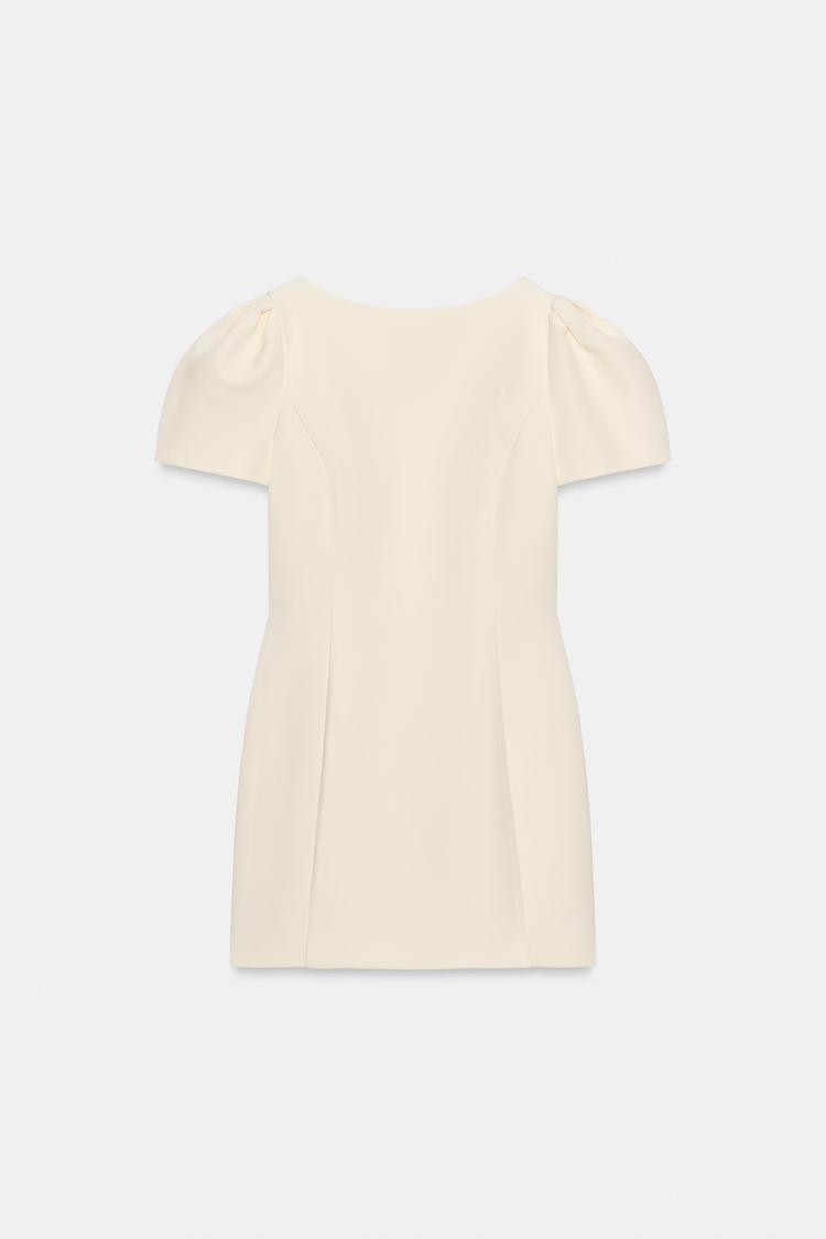 ZARA КОРОТКОЕ ПЛАТЬЕ СО СКЛАДКАМИ И КАРМАНАМИ, ЖЕЛТОВАТО-БЕЛЫЙ