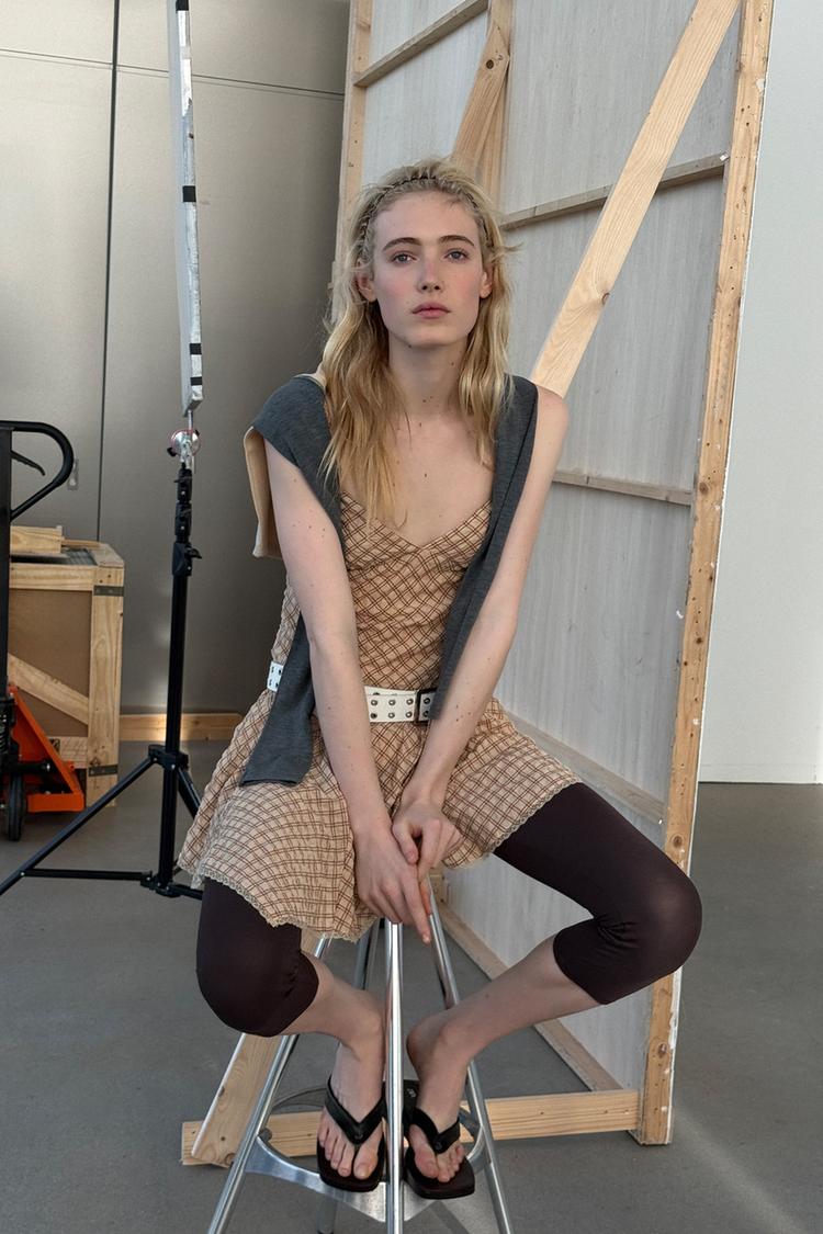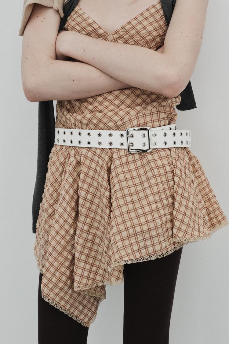 ZARA КОРОТКОЕ ПЛАТЬЕ В КЛЕТКУ С КРУЖЕВОМ, РАЗНОЦВЕТНЫЙ