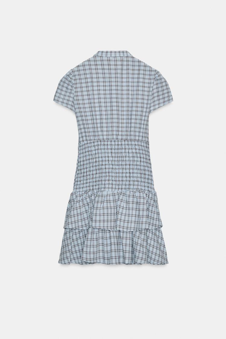 ZARA КОРОТКОЕ ПЛАТЬЕ В КЛЕТКУ С ВОЛАНАМИ, КОРИЧНЕВО-СИНИЙ
