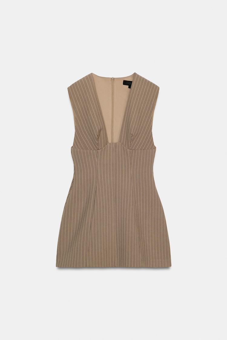 ZARA КОРОТКОЕ ПЛАТЬЕ В ПОЛОСКУ, СВЕТЛЫЙ РЫЖЕВАТО-КОРИЧНЕВЫЙ