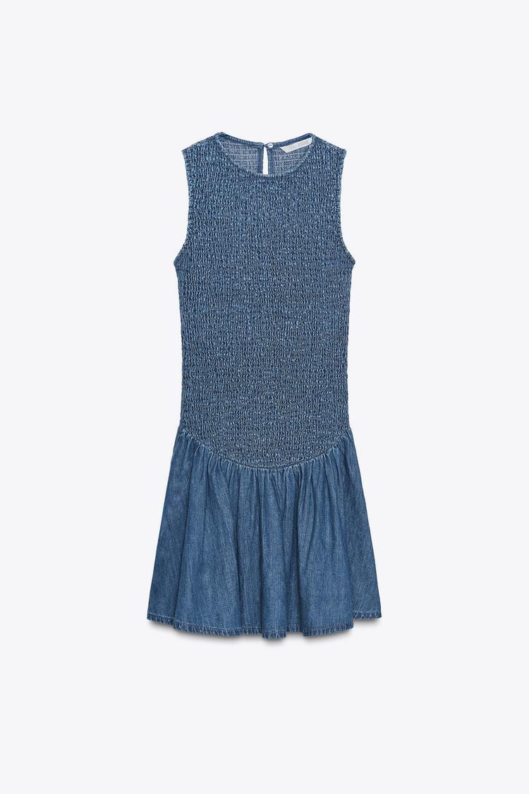 ZARA КОРОТКОЕ ПЛАТЬЕ В РУБЧИК, СИНИЙ