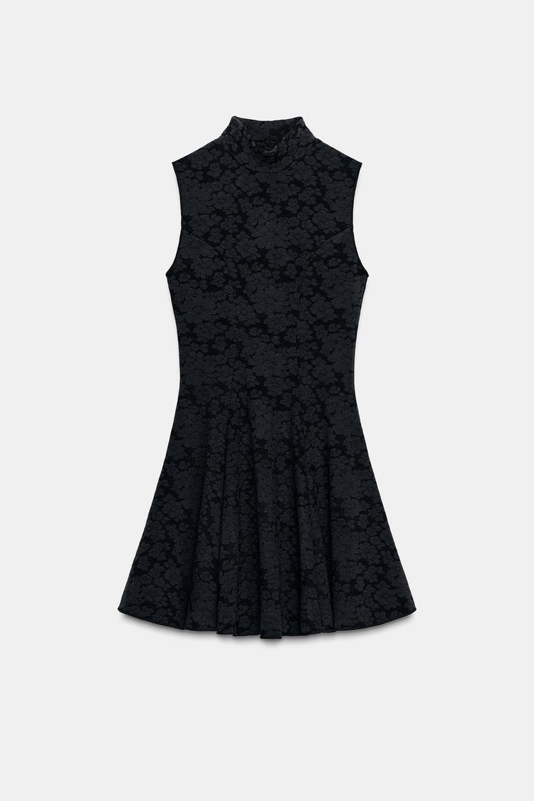 ZARA КОРОТКОЕ ЖАККАРДОВОЕ ПЛАТЬЕ, ЧЕРНЫЙ