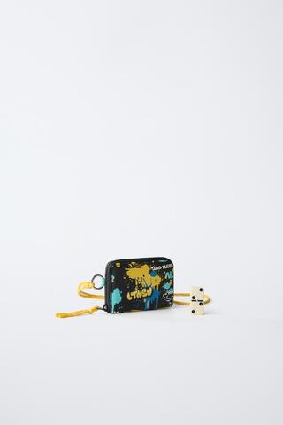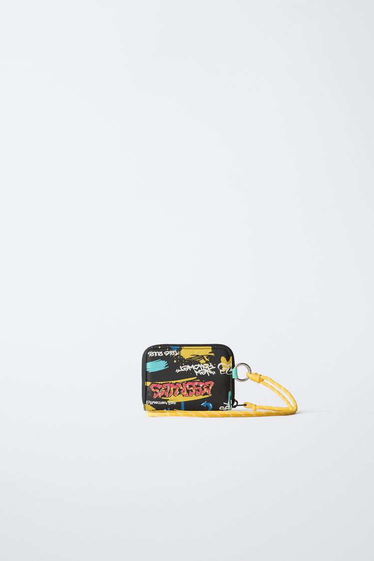 ZARA КОШЕЛЕК С ПРИНТОМ ГРАФФИТИ, ЧЕРНЫЙ