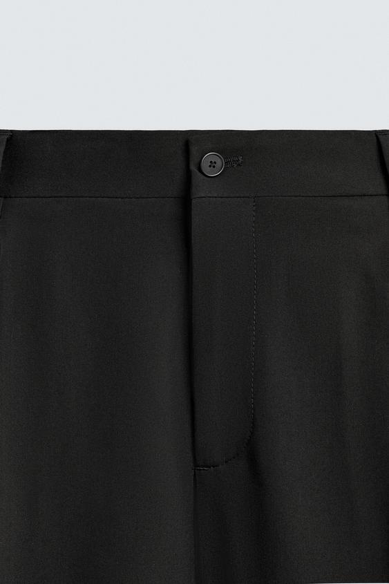 ZARA КОСТЮМНЫЕ БРЮКИ COMFORT СО СКЛАДКАМИ, ЧЕРНЫЙ