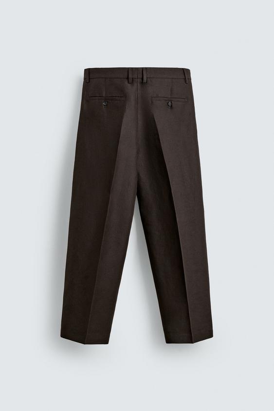 ZARA КОСТЮМНЫЕ БРЮКИ ИЗ 100% ЛЬНА — LIMITED EDITION, КОРИЧНЕВЫЙ