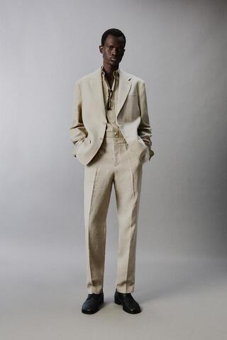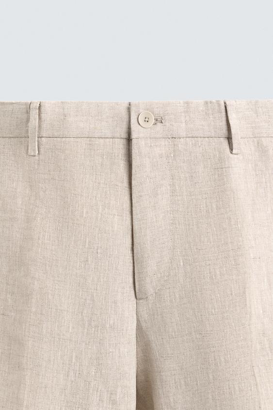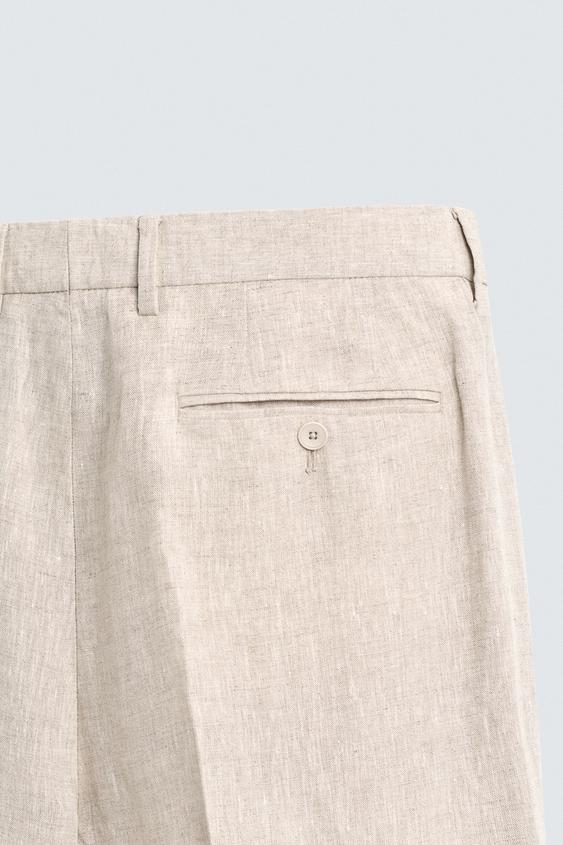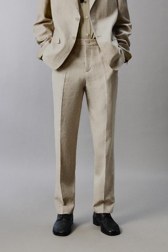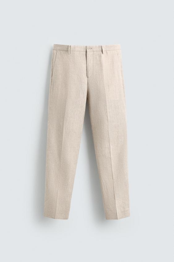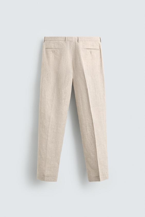 ZARA КОСТЮМНЫЕ БРЮКИ ИЗ 100% ЛЬНА, СВЕТЛО-БЕЖЕВЫЙ