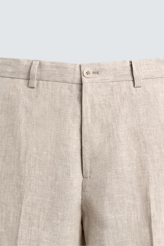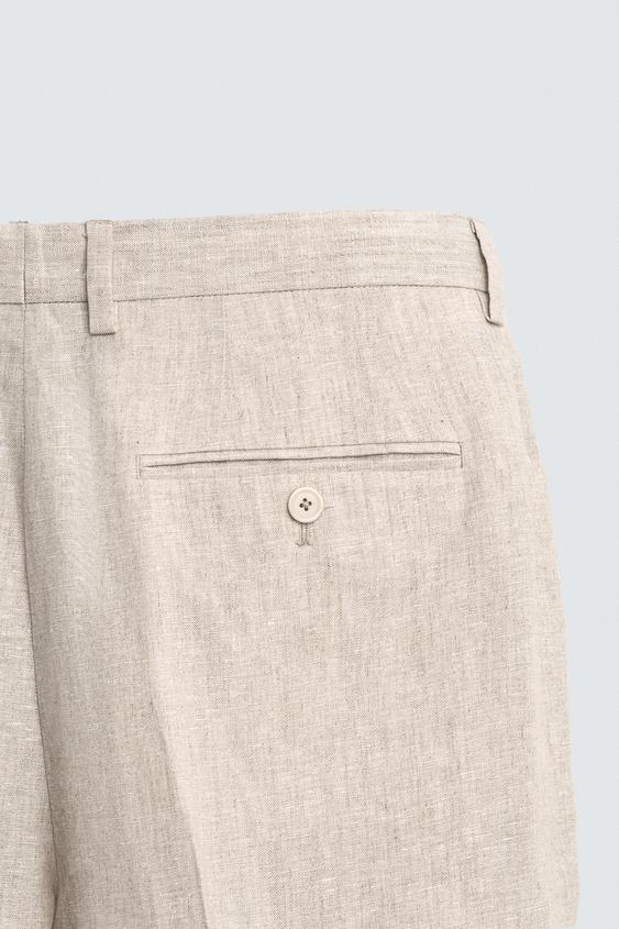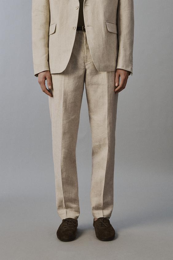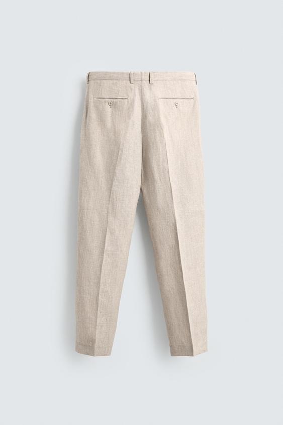 ZARA КОСТЮМНЫЕ БРЮКИ ИЗ 100% ЛЬНА, СВЕТЛО-БЕЖЕВЫЙ
