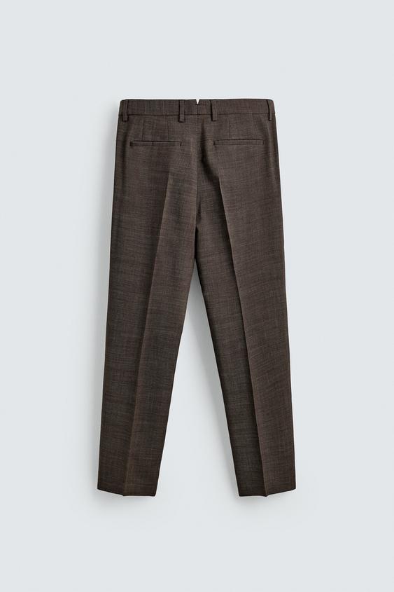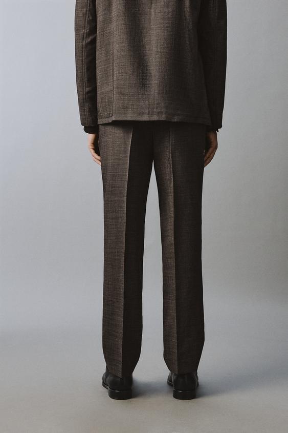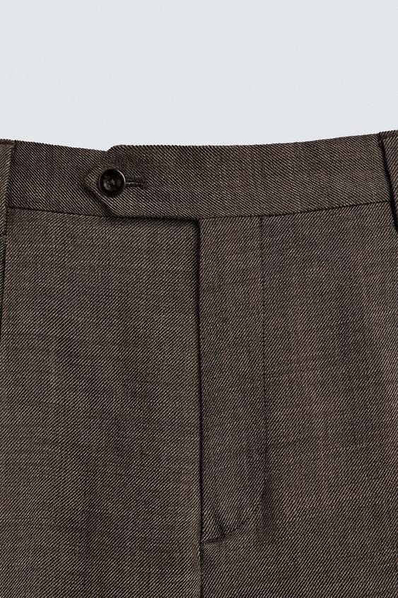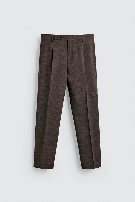 ZARA КОСТЮМНЫЕ БРЮКИ ИЗ 100% ШЕРСТИ СО СКЛАДКАМИ, КОРИЧНЕВЫЙ