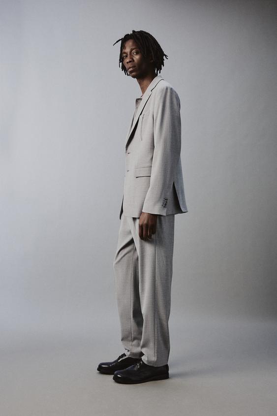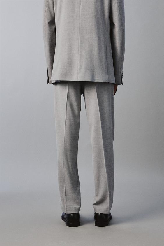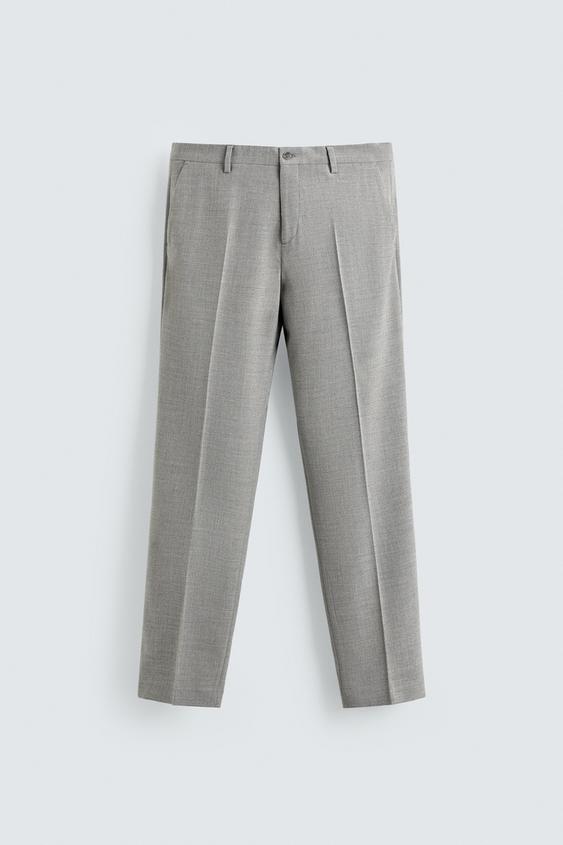 ZARA КОСТЮМНЫЕ БРЮКИ ИЗ РЕЛЬЕФНОЙ ТКАНИ, СВЕТЛО-СЕРЫЙ