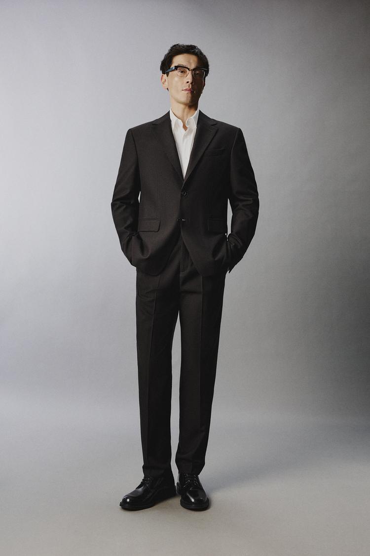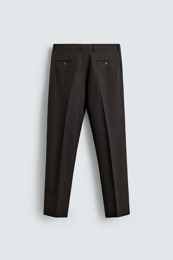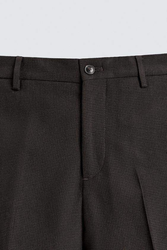 ZARA КОСТЮМНЫЕ БРЮКИ С УЗОРОМ «ГУСИНАЯ ЛАПКА», ТЕМНО-КОРИЧНЕВЫЙ