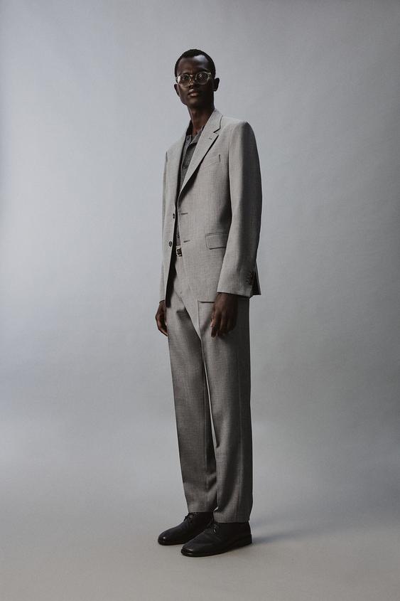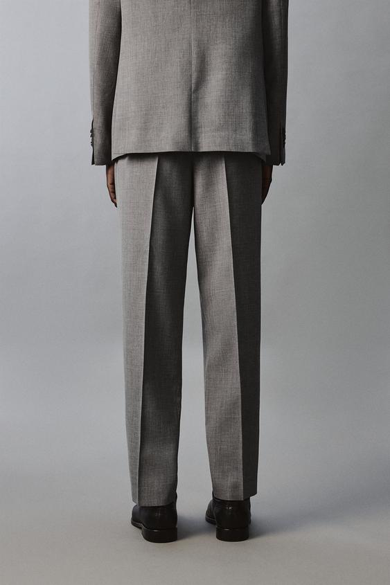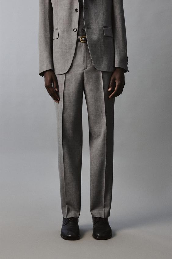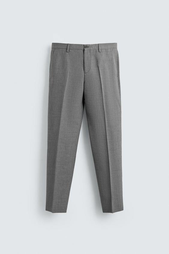 ZARA КОСТЮМНЫЕ БРЮКИ SLIM FIT ИЗ РЕЛЬЕФНОЙ ТКАНИ, СЕРЫЙ