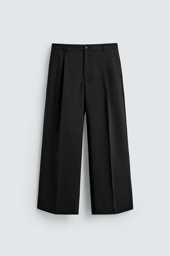 ZARA КОСТЮМНЫЕ БРЮКИ СО СКЛАДКАМИ, ЧЕРНЫЙ