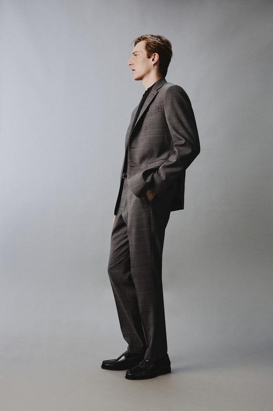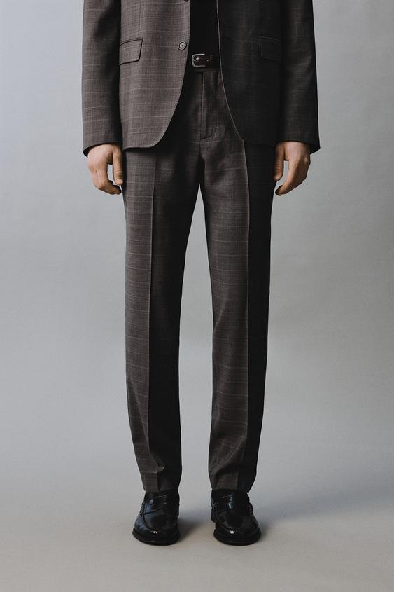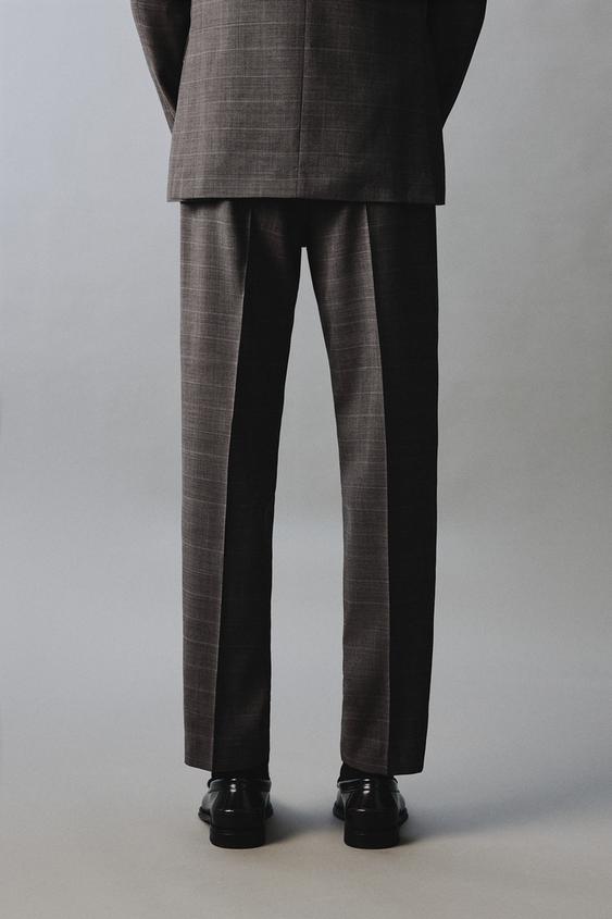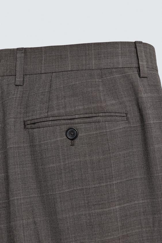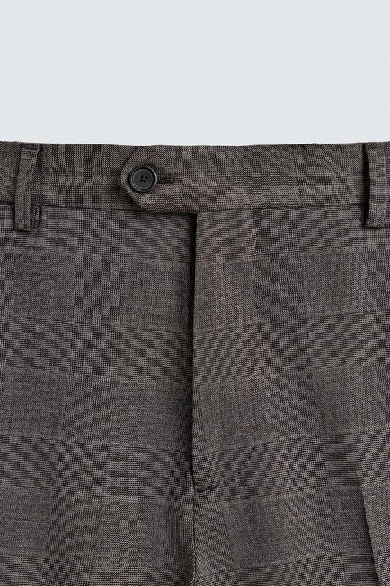 ZARA КОСТЮМНЫЕ БРЮКИ В КЛЕТКУ ИЗ 100% ШЕРСТИ, КОРИЧНЕВЫЙ