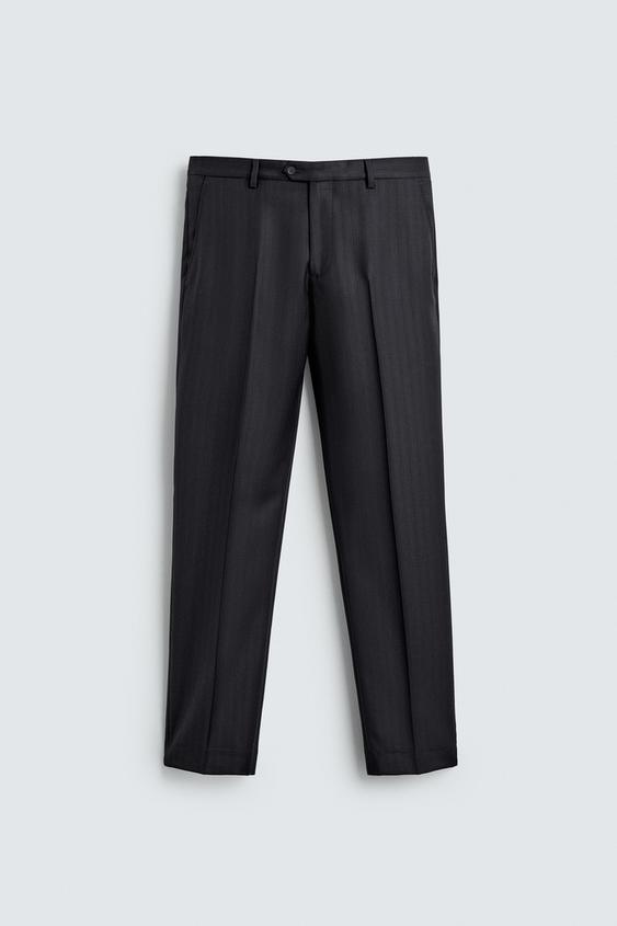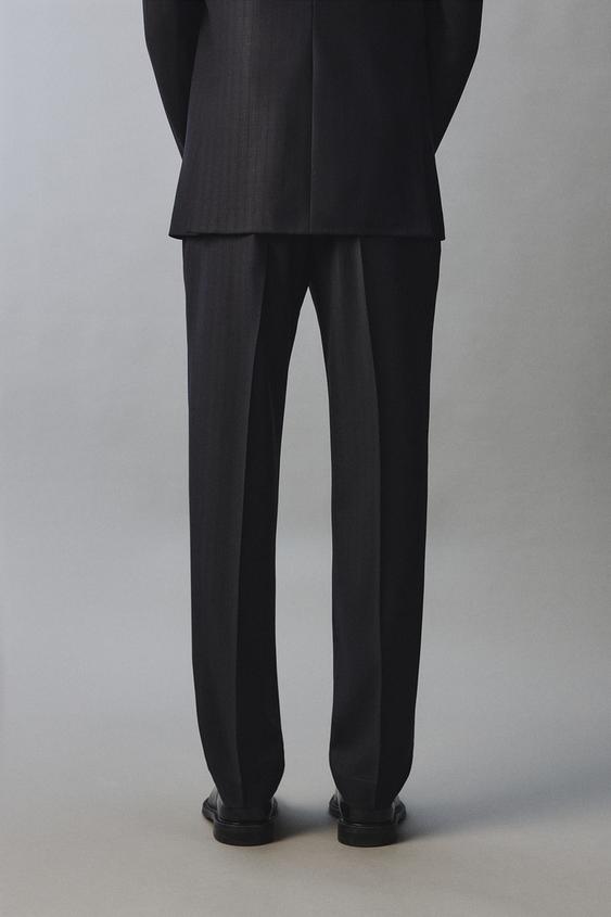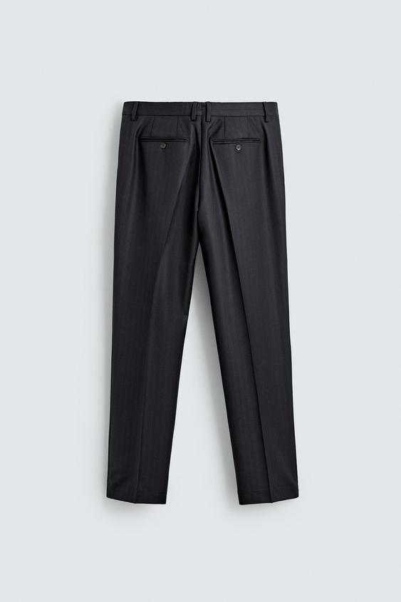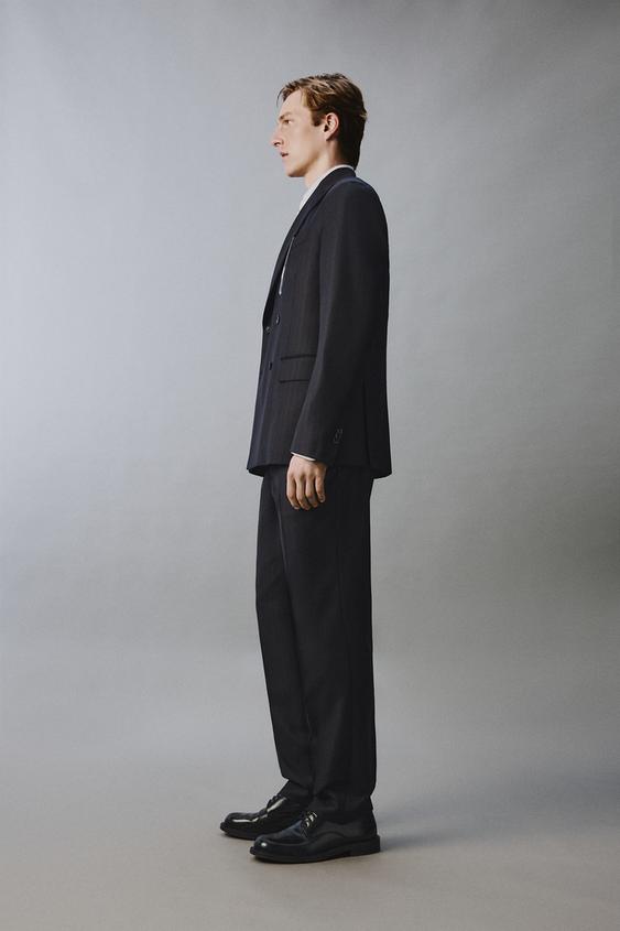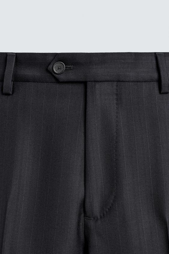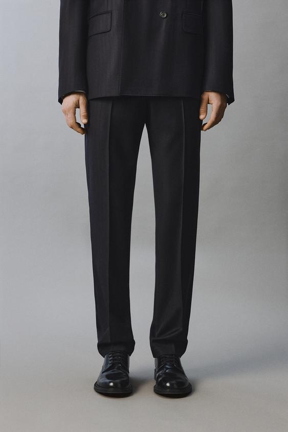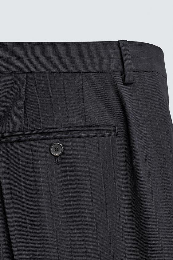 ZARA КОСТЮМНЫЕ БРЮКИ В ПОЛОСКУ ИЗ 100% ШЕРСТИ, МОРСКОЙ СИНИЙ