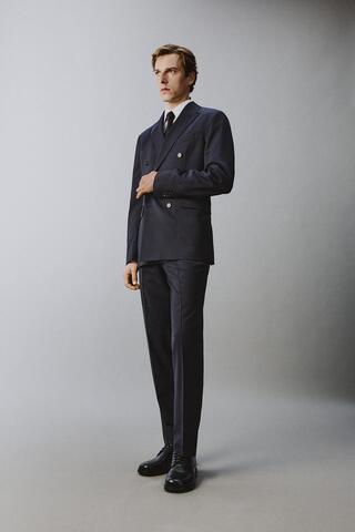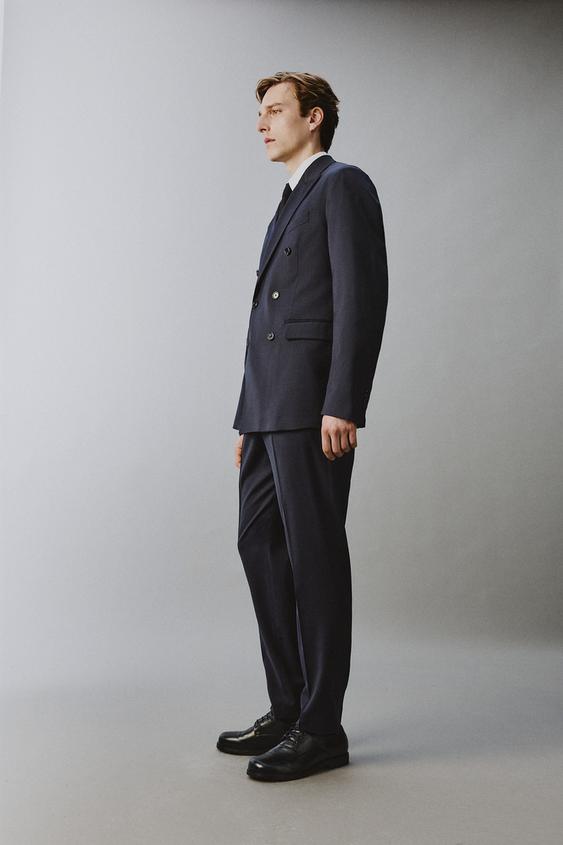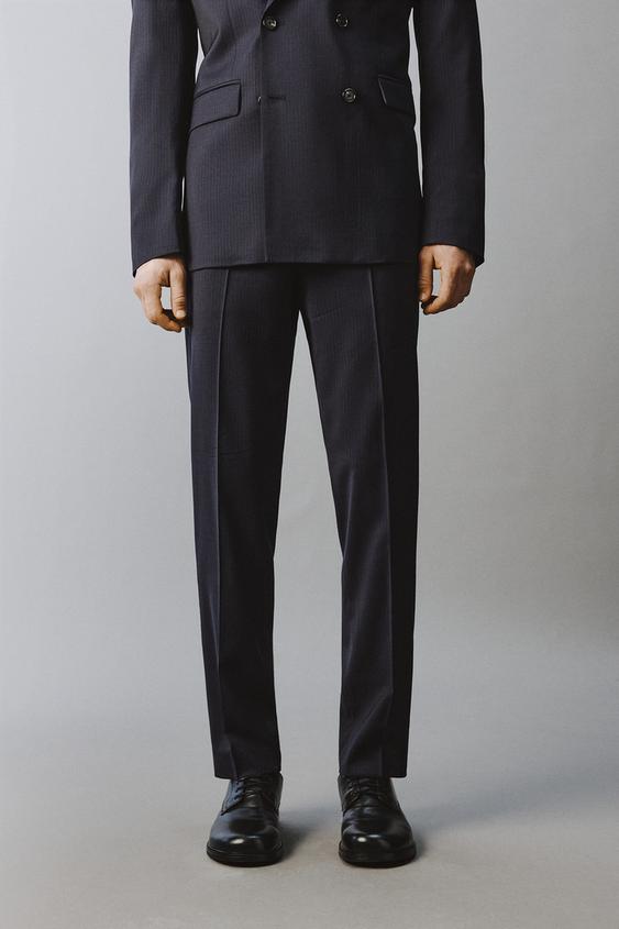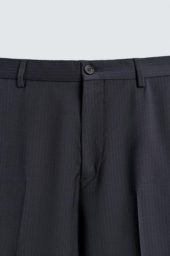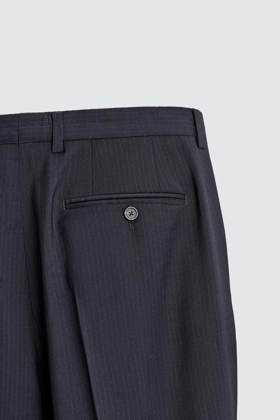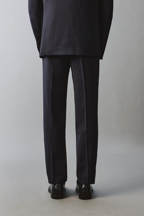 ZARA КОСТЮМНЫЕ БРЮКИ В ТОНКУЮ ПОЛОСКУ ИЗ 100% ШЕРСТИ, МОРСКОЙ СИНИЙ