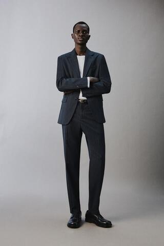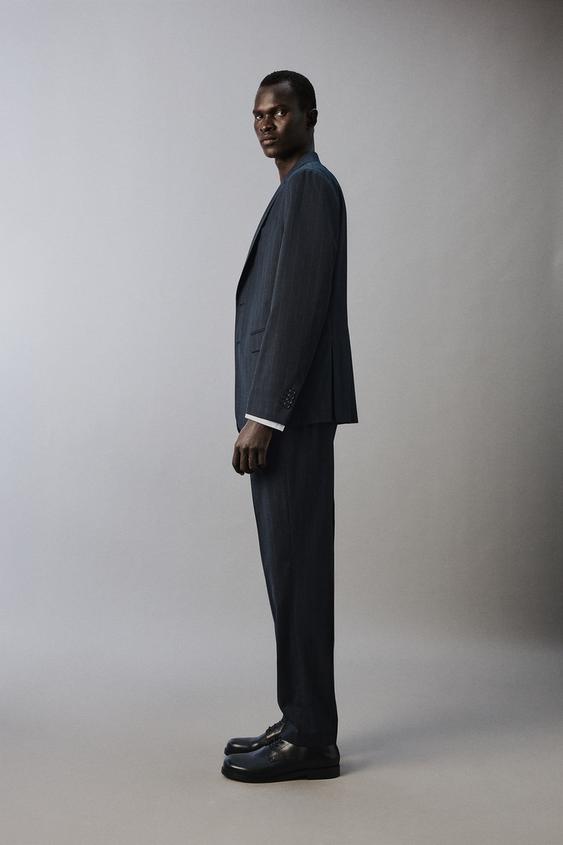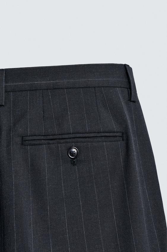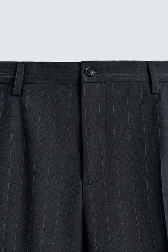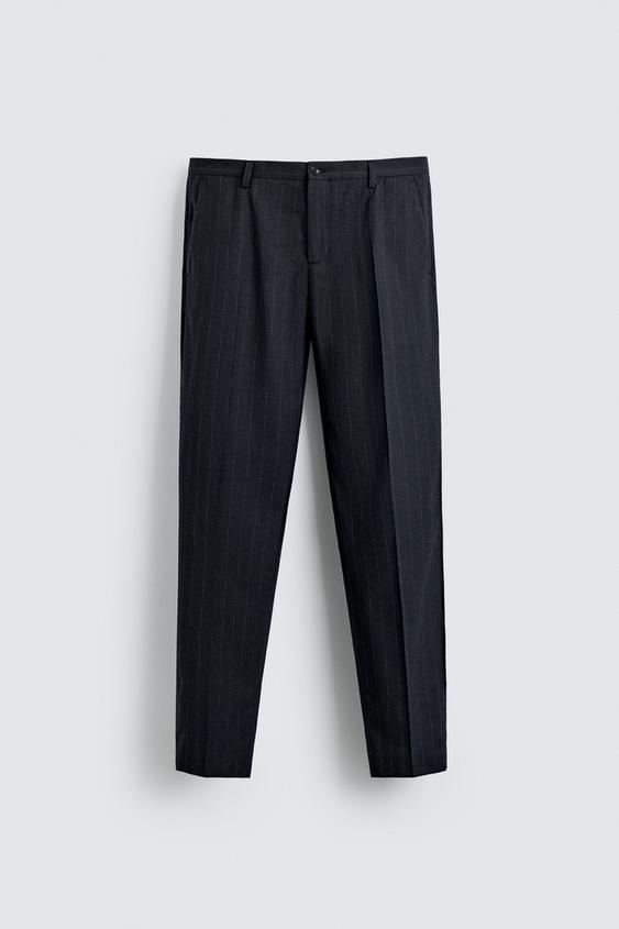 ZARA КОСТЮМНЫЕ БРЮКИ В ТОНКУЮ ПОЛОСКУ, МОРСКОЙ СИНИЙ