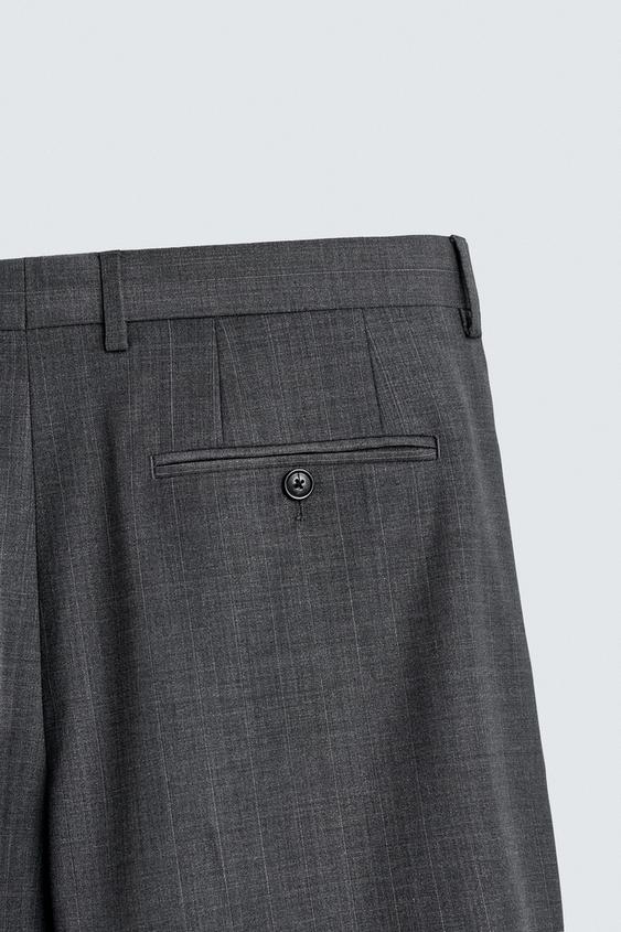 ZARA КОСТЮМНЫЕ БРЮКИ В ТОНКУЮ ПОЛОСКУ, СЕРЫЙ