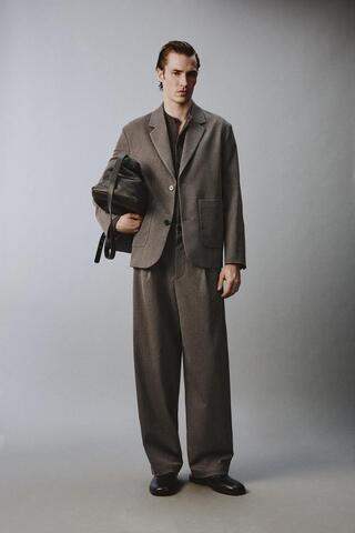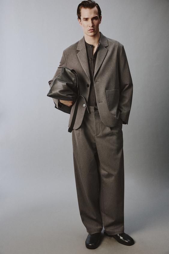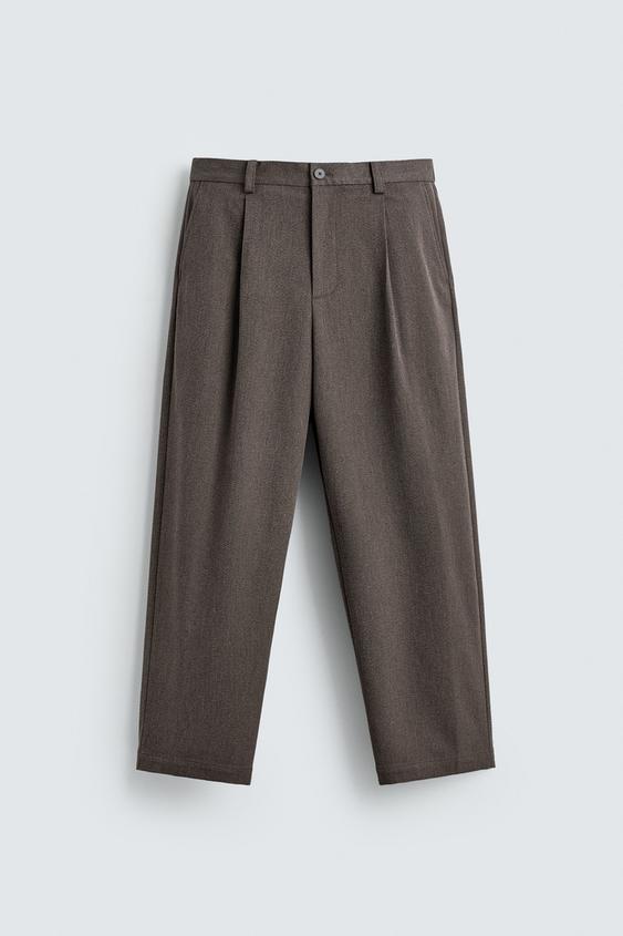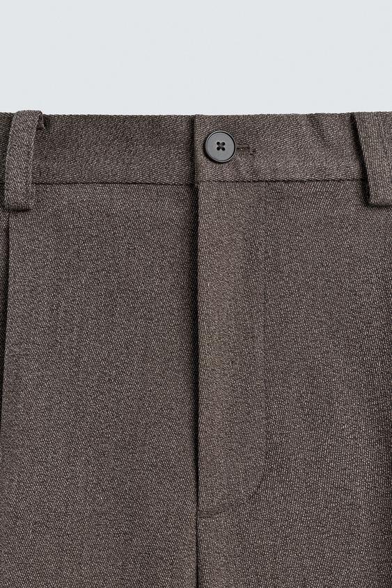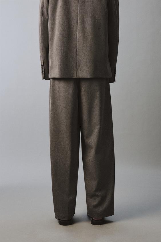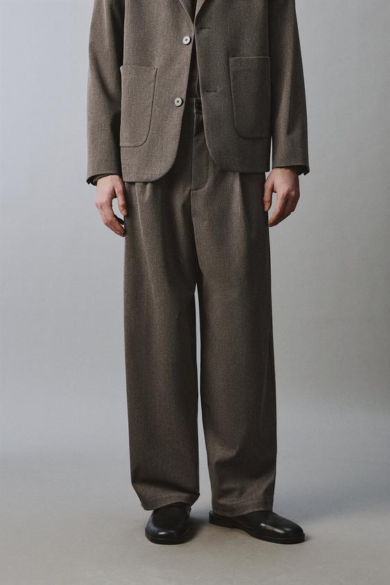 ZARA КОСТЮМНЫЕ БРЮКИ WIDE FIT ИЗ РЕЛЬЕФНОЙ ТКАНИ, СЕРО-КОРИЧНЕВЫЙ