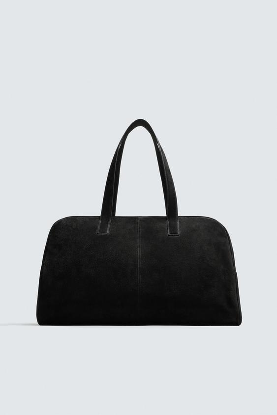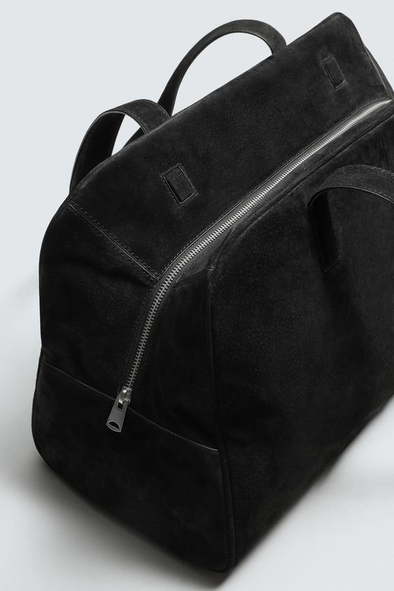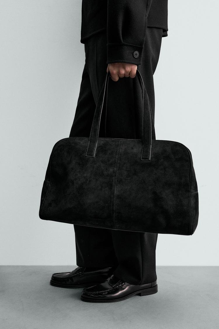 ZARA КОЖАНАЯ ДОРОЖНАЯ СУМКА, ЧЕРНЫЙ