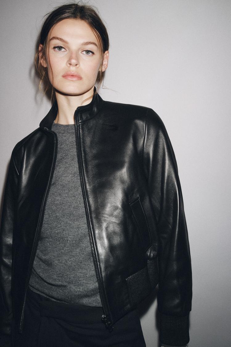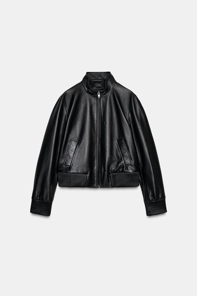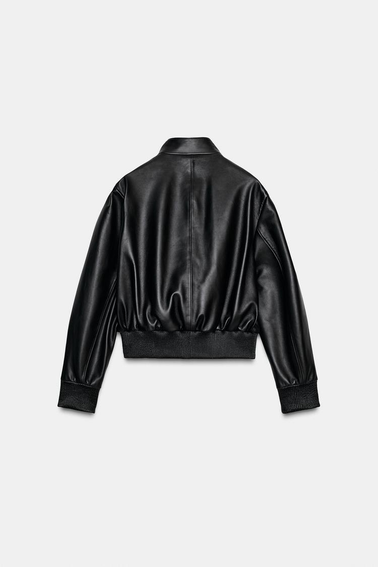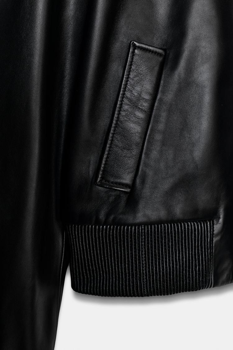 ZARA КОЖАНАЯ КУРТКА-БОМБЕР ZW COLLECTION LIMITED EDITION, ЧЕРНЫЙ