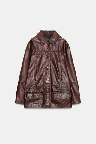ZARA КОЖАНАЯ КУРТКА, КОРИЧНЕВЫЙ