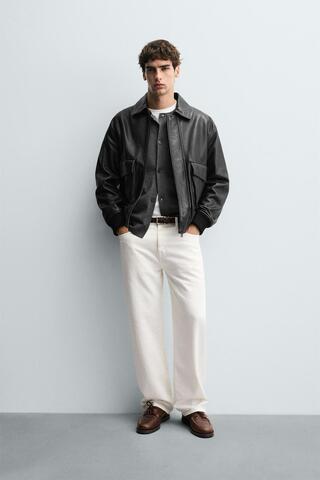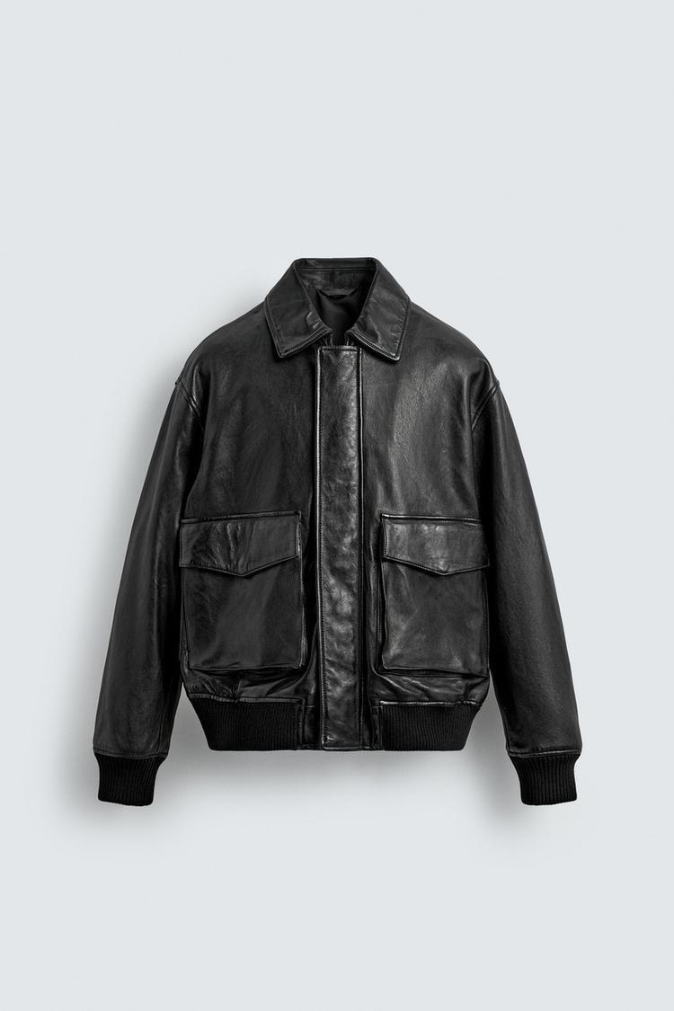 ZARA КОЖАНАЯ КУРТКА С КАРМАНАМИ, ЧЕРНЫЙ